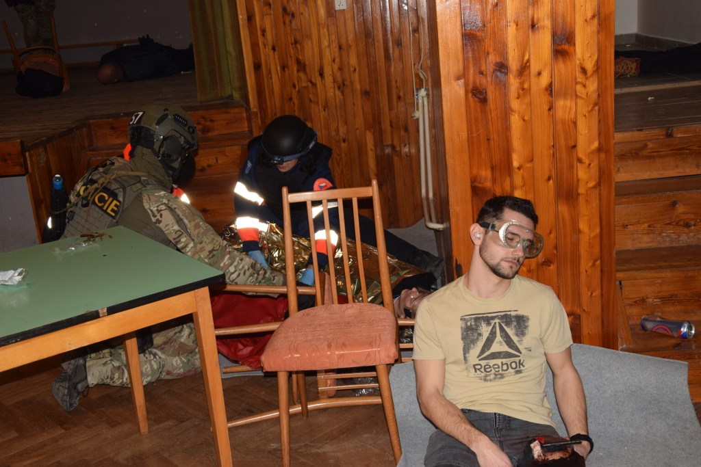Pro cvičení byl v kulturním domě připraven klasický scénář koncertu oblíbené rockové kapely. Vystoupení si nenechalo ujít velké množství fanoušků. Role návštěvníků koncertu se zhostilo více jak 80 figurantů z řad studentů připravujících se na budoucí práci u zdravotnické záchranné služby i studentů policejní školy z Holešova.