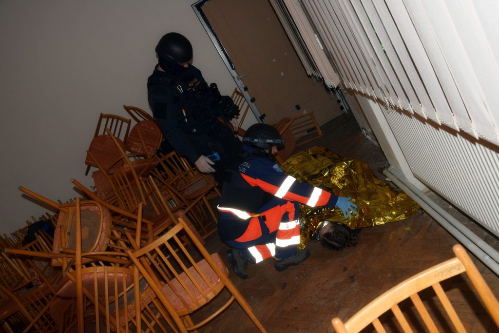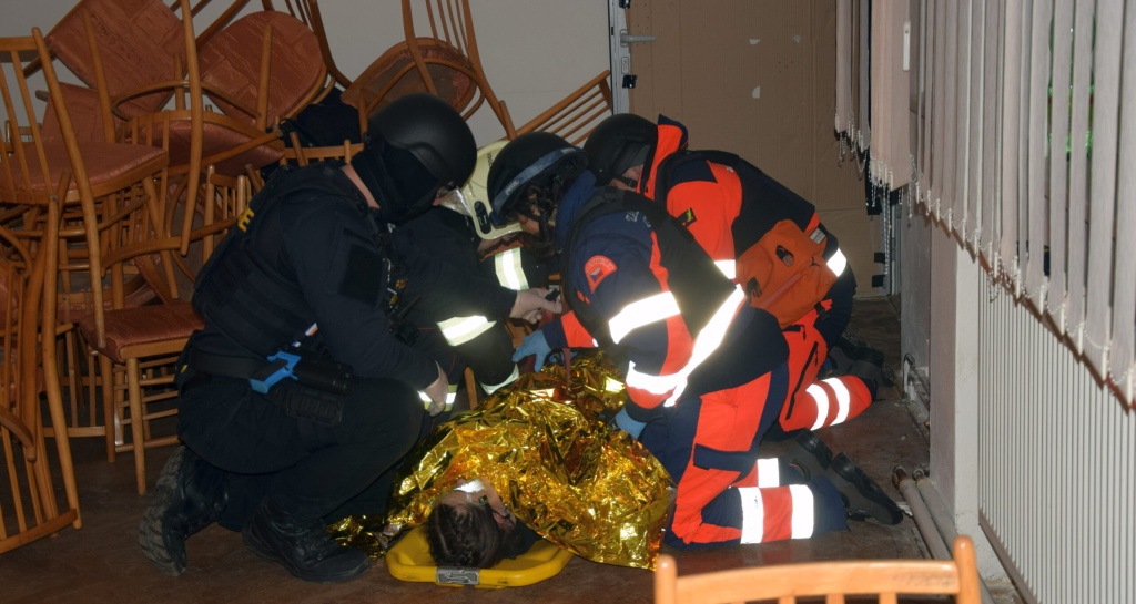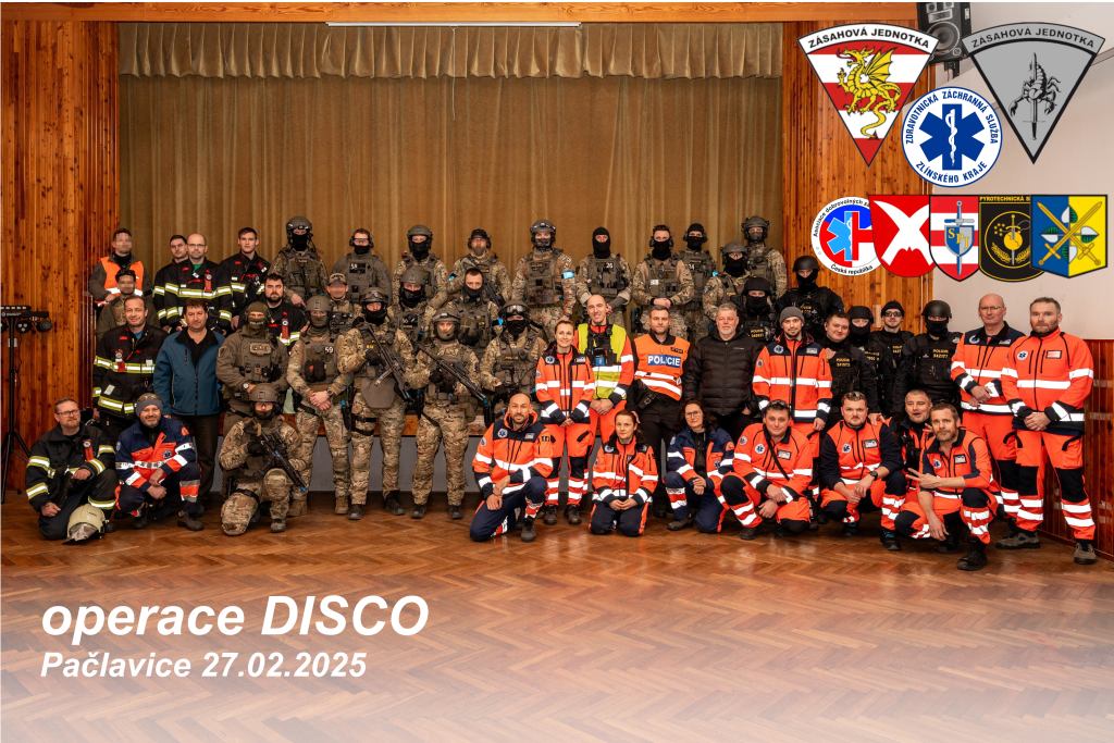 V 17:20 hodin do budovy, kde se konal „cvičný“ koncert, vtrhlo několik ozbrojených teroristů, kteří zaútočili na účastníky akce. V tuto chvíli se už cvičení nazvané „Akce DISCO“ rozjelo na plné obrátky. Zvuky a záblesky střelby s výbuchy, křik napadených návštěvníků, mnoho zmatených osob v šoku snažících se utéci nebo se schovat s cílem zachránit si to nejcennější – svůj život, dokreslovalo reálnost nasimulované situace. Po několika málo minutách se už na místo sjížděli policisté a záchranná služba, členové zásahové jednotky. Jejich práci na místě ztěžovalo kromě přesvědčivé práce figurantů, kteří se dokázali skvěle zhostit rolí křičících, zděšených a raněných lidí, také velmi nebezpečné prostředí umocněné světelnými efekty a hlasitou hudbou.