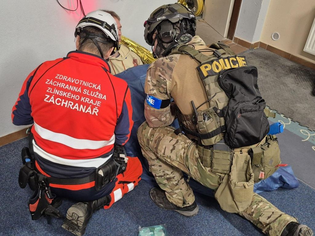 Společné cvičení složek policie a záchranné služby v Pačlavicích