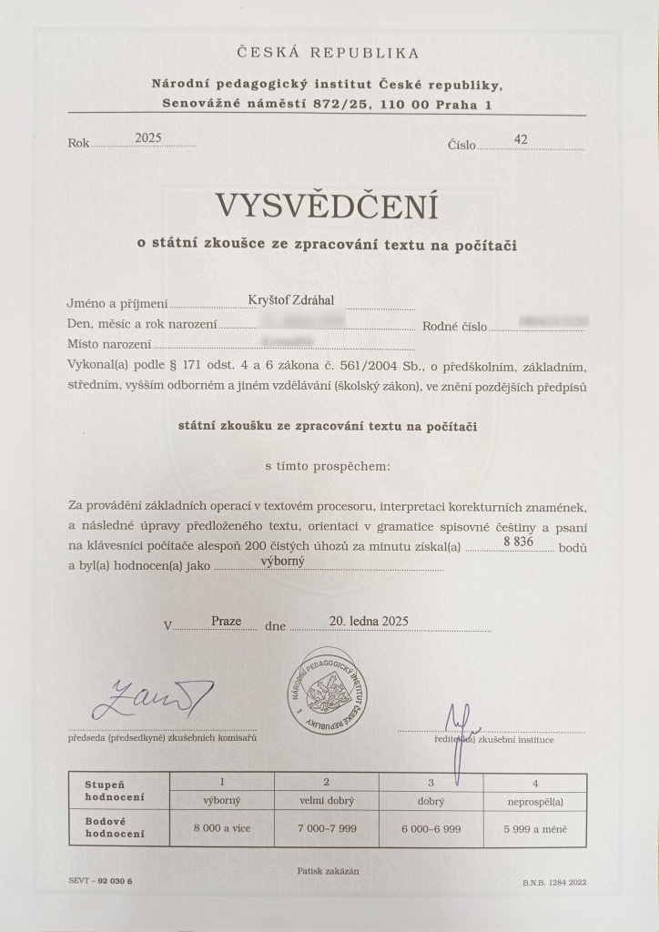 Absolvováním státní zkoušky získali naši úspěšní uchazeči vysvědčení dokládající způsobilost efektivní písemné komunikace. Tento dokument je garantovaný Ministerstvem školství, mládeže a tělovýchovy. Znalosti a dovednosti, jež žáci prokázali prostřednictvím zkoušky, využijí v budoucnu nejen v předmětu TEA, ale především v jejich budoucím profesním životě.