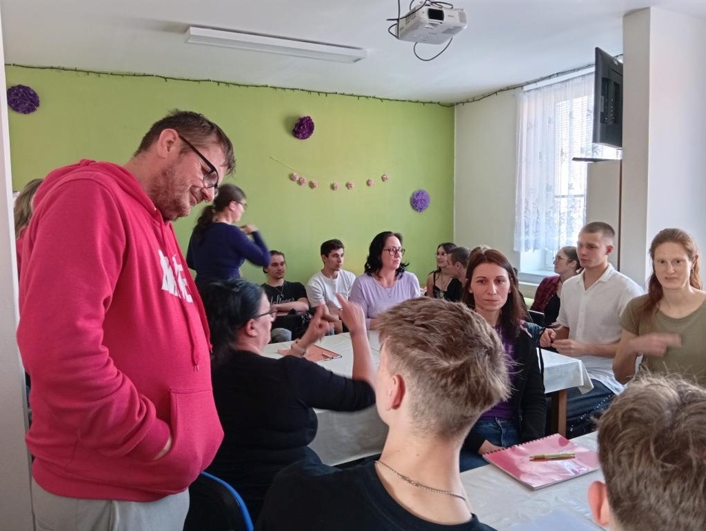 Závěrem setkání si všichni vyzkoušeli hru „tichá pošta“, při které si názorně ověřili, jak se mohou informace během předávání měnit. Aktivita byla nejen zábavná, ale zároveň ukázala, jak důležitá je přesnost a soustředění při komunikaci.