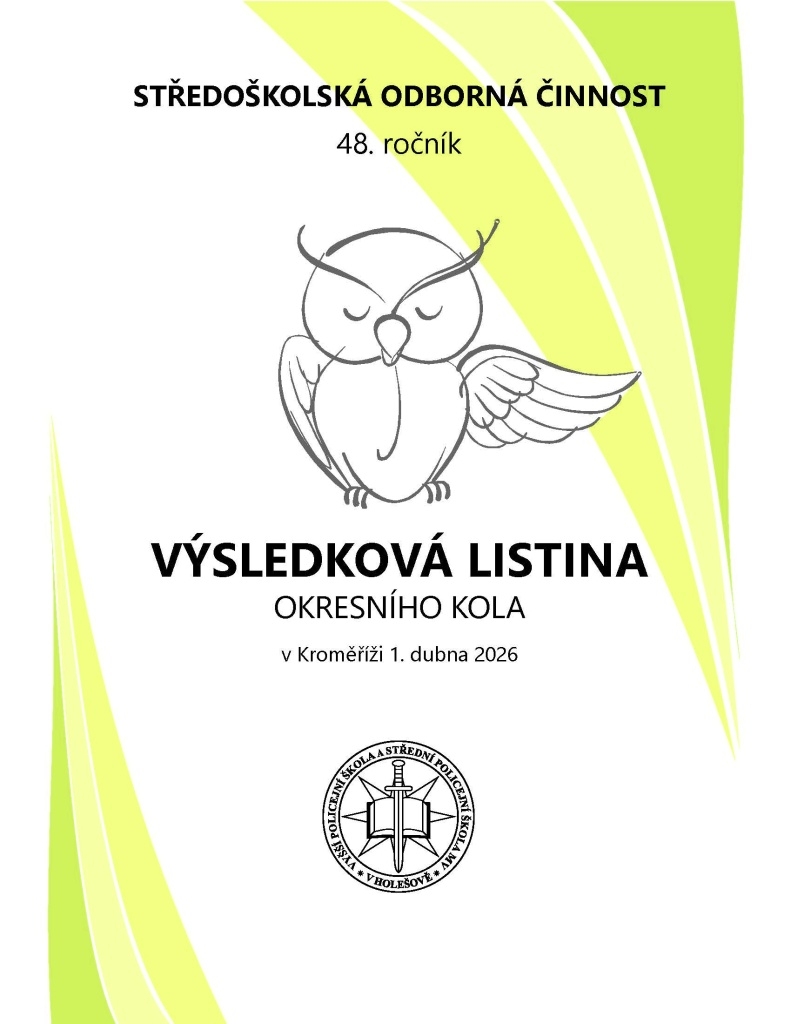 Ve středu 1. 4. 2026 se na Gymnáziu v Kroměříži konal 48. ročník okresního kola středoškolské odborné činnosti, kterého se účastnili čtyři žáci z naší školy. Všichni čtyři soutěžící úspěšně obhájili své předložené práce a v jednotlivých soutěžních oborech obsadili následující umístění: