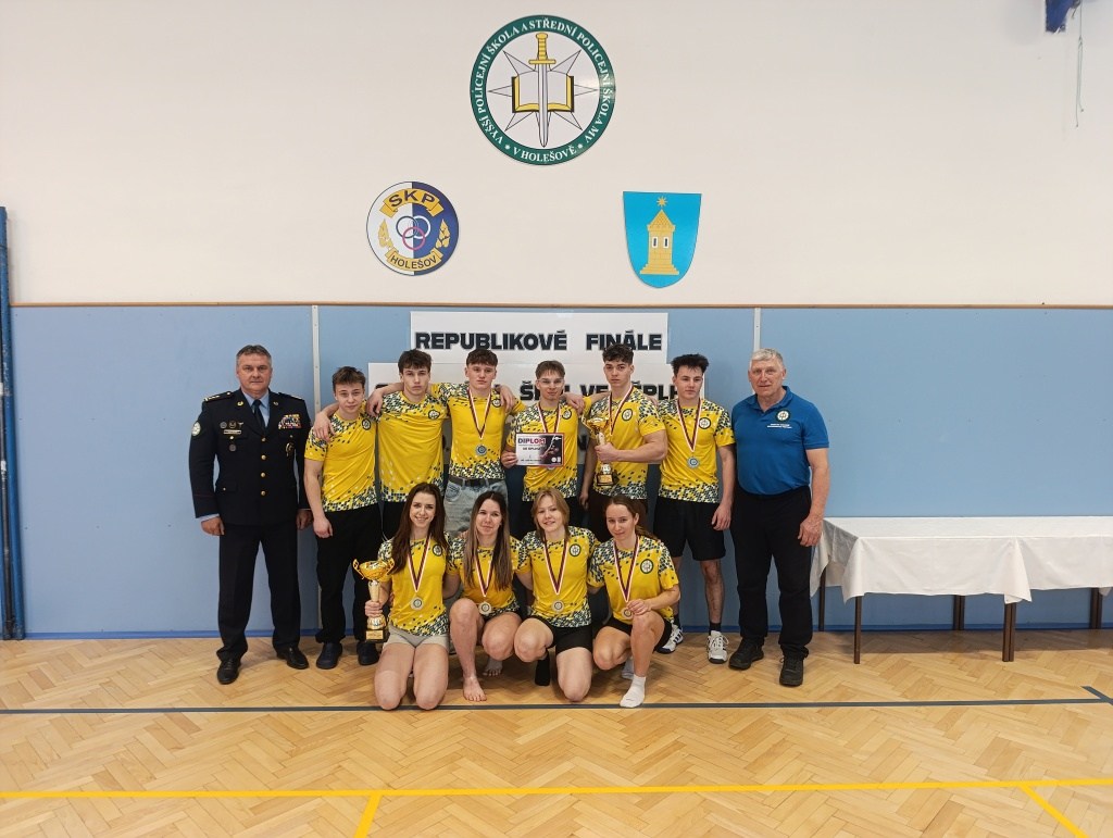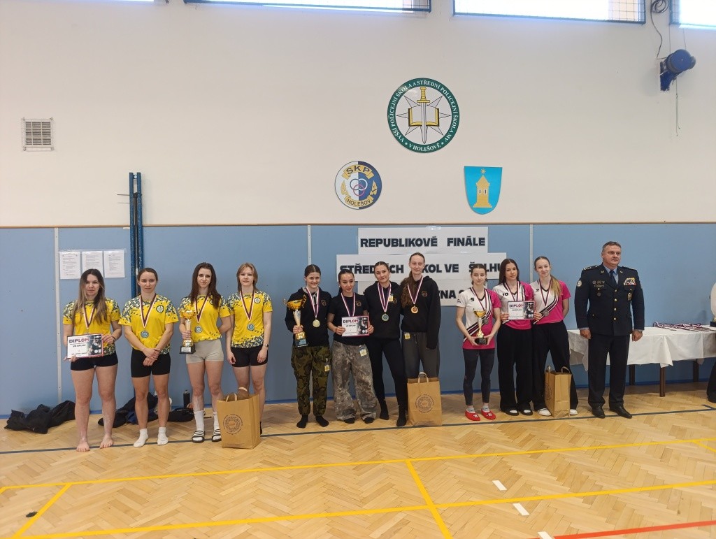 Obě družstva postoupila do republikového finále, které pořádala naše škola. Chlapci opět šplhali na laně ze startovní pozice sed, děvčata potom na tyči ze stoje. V silné konkurenci obě naše družstva obsadila shodně druhá místa. Všem našim sportovcům děkujeme za vzornou reprezentaci školy.