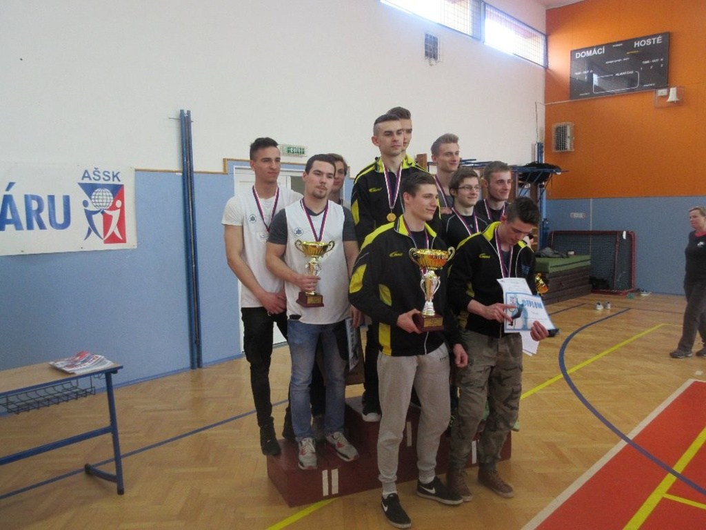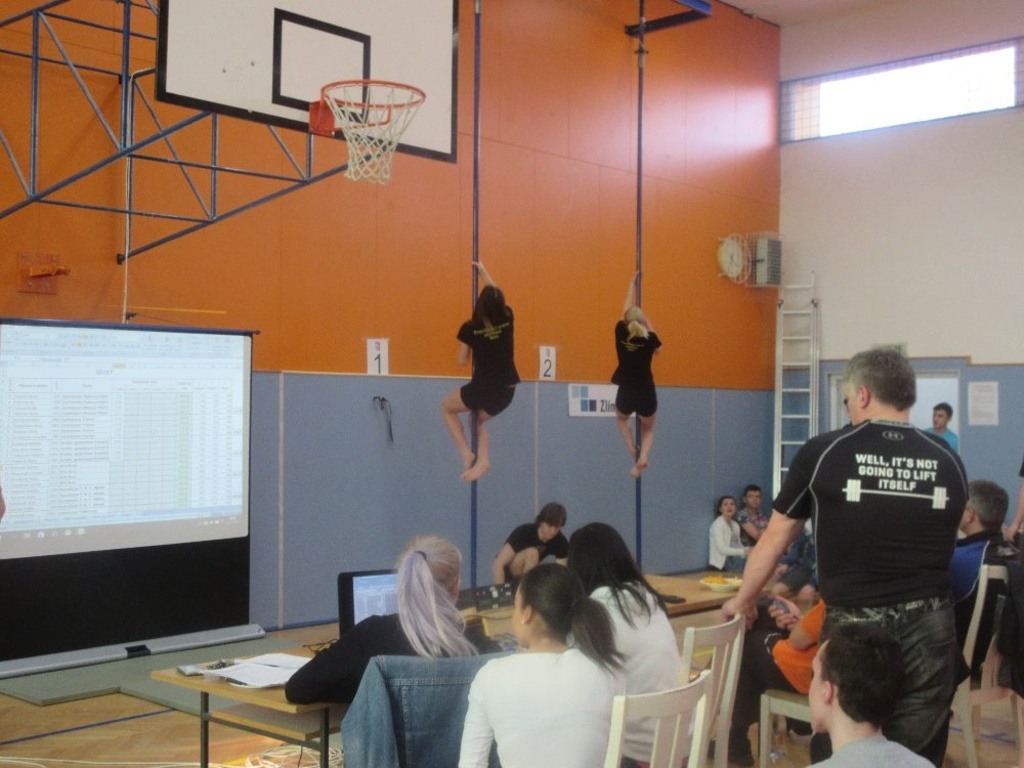 Letošní republiková soutěž se konala v Holešově – naše policejní škola je dlouholetým spolehlivým pořadatelem silových soutěží středoškoláků a pořadatelský tým se opět se ctí zhostil svého úkolu: po dva dny bojovalo deset dívčích a deset chlapeckých týmů oproti elektrické časomíře o pocty nejvyšší – a věru bylo na co se dívat! Ve finále děvčat se zaskvěla vynikajícími výkony především celková vítězka Marie Berčíková (Gymnázium Trutnov), která ve všech pěti pokusech šplhala pod 3 sekundy a posledním časem 2,27 sekund dokonce překonala český rekord této soutěže! Družstva dívek bojovala do posledního kola o celkové umístění a o stříbrné příčce Arcibiskupského gymnázia Kroměříž nakonec rozhodlo pouhých 15 setin … Chlapecká kategorie měla rovněž svého suveréna – Aleš Fišer (BPA Brno) převýšil druhého v pořadí o téměř celou sekundu a předvedl také nejlepší výkon soutěže – 3,20s; pomohl tak výrazně i k vítězství svého celku. K naší radosti se na medailových příčkách objevili i borci z naší školy, kdy posledními pokusy smazali setinovou ztrátu na Třinec a vybojovali bronzové medaile.