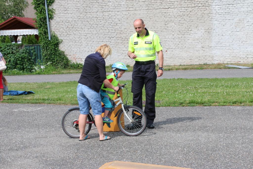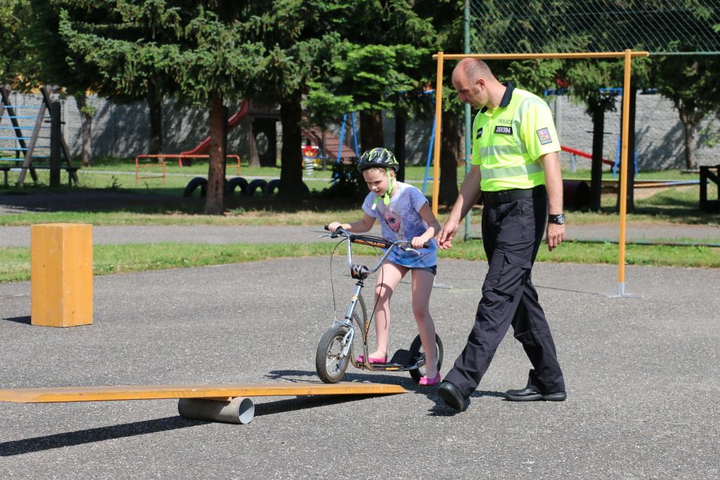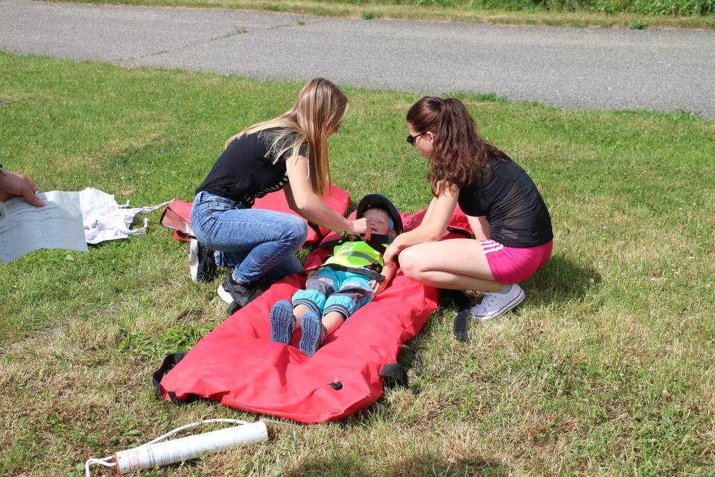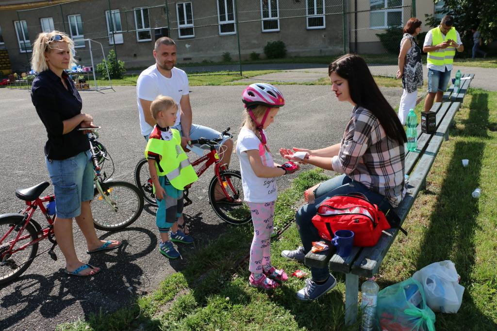 Děti si vyzkoušeli jízdu zručnosti na kole či koloběžce, postup při resuscitaci osoby, transport zraněného a ošetření zranění způsobeného pádem z kola.