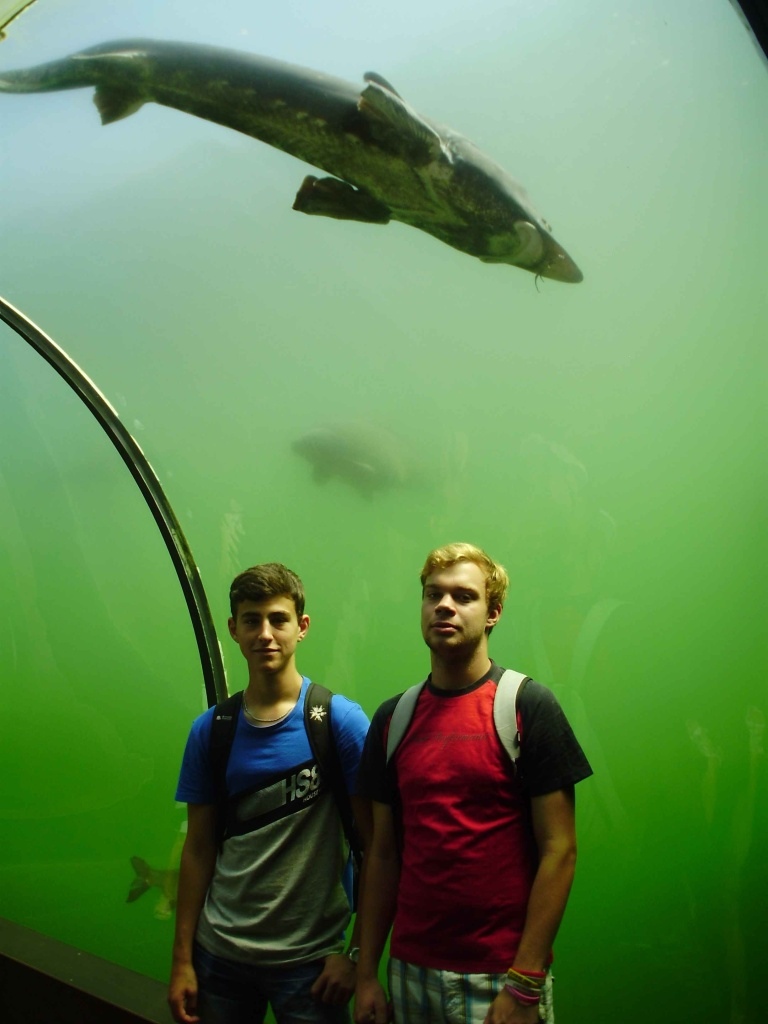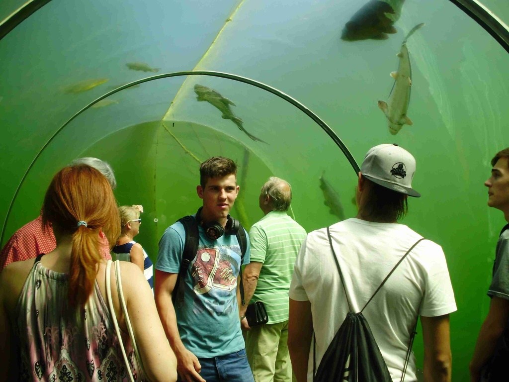 V další části exkurze byla prohlídka „Živé vody“ v Modré. Ve sladkovodní a botanické expozici, která svým obsahem volně doplnila probírané učivo v ekologii, byli žáci seznámeni s životem ve vodě, kolem vody, s vodními živočichy i rostlinami řeky Moravy a charakteristikou jednotlivých biotopů.