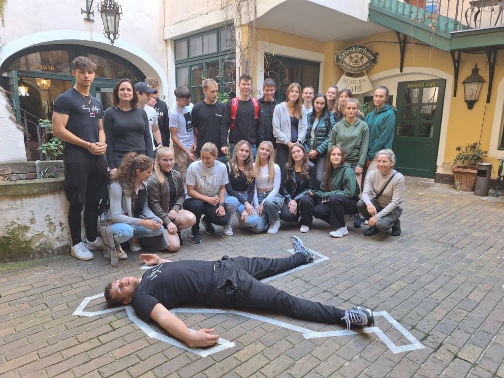 V rakouské metropoli jsme nejprve navštívili Kriminalistické muzeum. Zde jsme se rozdělili na 2 skupiny a vydali jsme se na komentovanou prohlídku s průvodci. Ti byli velmi milí a shovívaví, snažili se mluvit pomalu a zřetelně, abychom jim dobře rozuměli, a když jsme se malinko ztráceli, pomáhaly nám s porozuměním naše paní učitelky. Dozvěděli jsme se spoustu informací o nejvýznačnějších kriminalistických případech Rakouska od středověku až po dvacáté století.