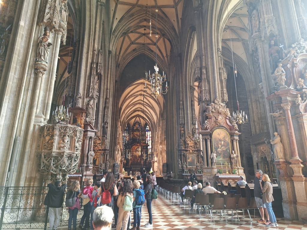Rychlým krokem jsme se pak přesunuli do historického centra a vydali se na komentovanou prohlídku se zaměřením na nejvýznamnější pamětihodnosti města, např. Rathausplatz, místo, kde se každoročně pořádají vyhlášené vánoční trhy, nebo Stephansdom neboli katedrálu sv. Štěpána, která je postavena v gotickém stylu a je zároveň symbolem Vídně. Zde jsme dostali rozchod. Někdo šel poznávat kulinářské umění Vídně, někdo nakupovat suvenýry, každý dle svého uvážení.