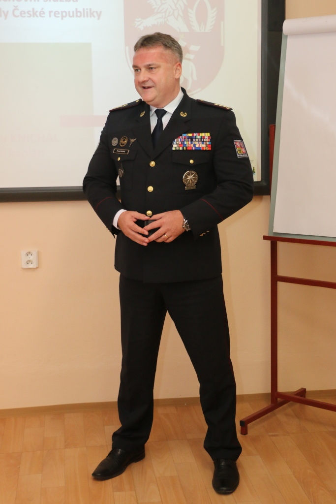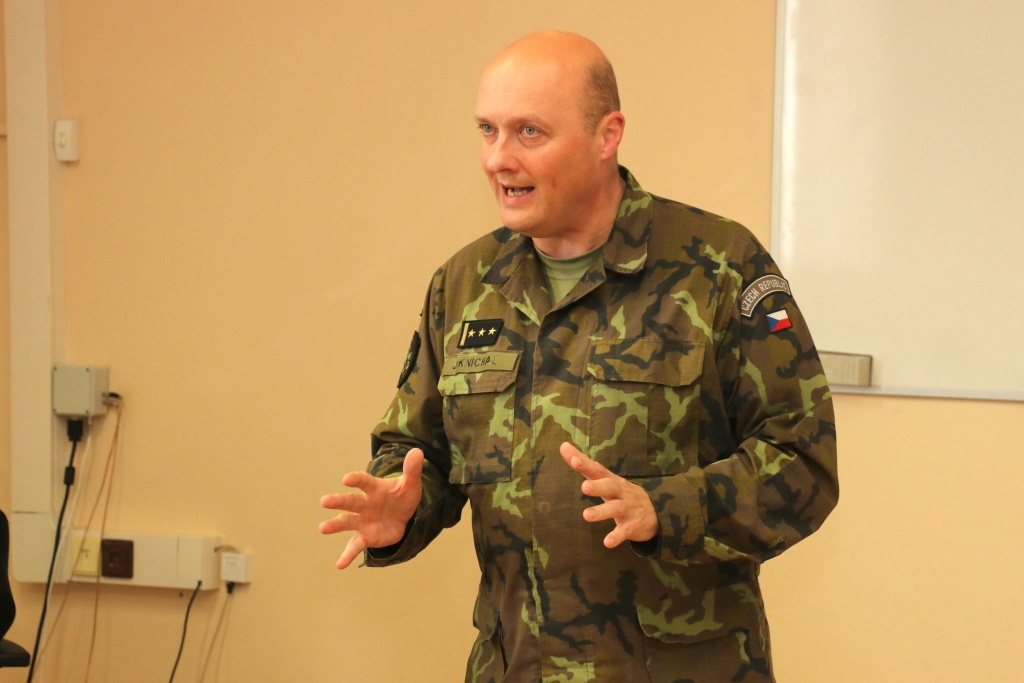 V první části besedy plk. Kníchal seznámil studenty se základními otázkami Duchovní služby v Armádě ČR, její historií, posláním, zaměřením a konkrétními příklady činnosti. Byly zdůrazněny etické aspekty práce vojenských kaplanů v jejich každodenní práci a to jak u vojenských útvarů, tak i v zahraničních misích. Současně akcentoval význam morálních duchovních hodnot ve společnosti a ve světě včetně aktuální situace související s probíhající válkou na Ukrajině.