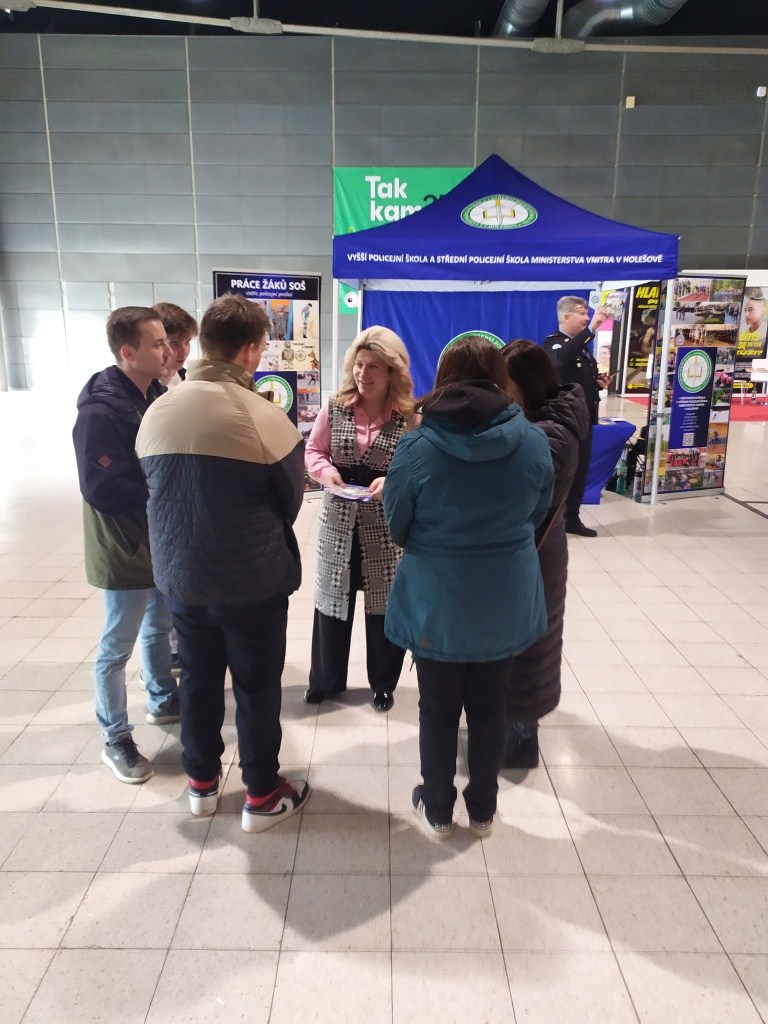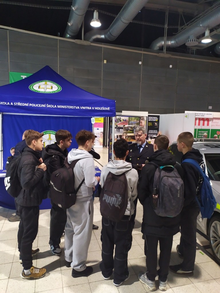 Ve dnech 29. a 30. listopadu se na výstavišti v Brně konala burza středních škol. Na této akci naše škola spolupracuje s Krajským ředitelstvím policie Jihomoravského kraje. VPŠ a SPŠ MV v Holešově měla v Brně své zastoupení v podobě informačního stánku. Pracovníci školy během těchto dvou dnů podali informace o přijímacím řízení a vzdělávání na střední odborné škole stovkám zájemců. V sobotu 30. listopadu tým pracovníku školy rozšířil i žák z 1. D Bartoloměj Buzrla.