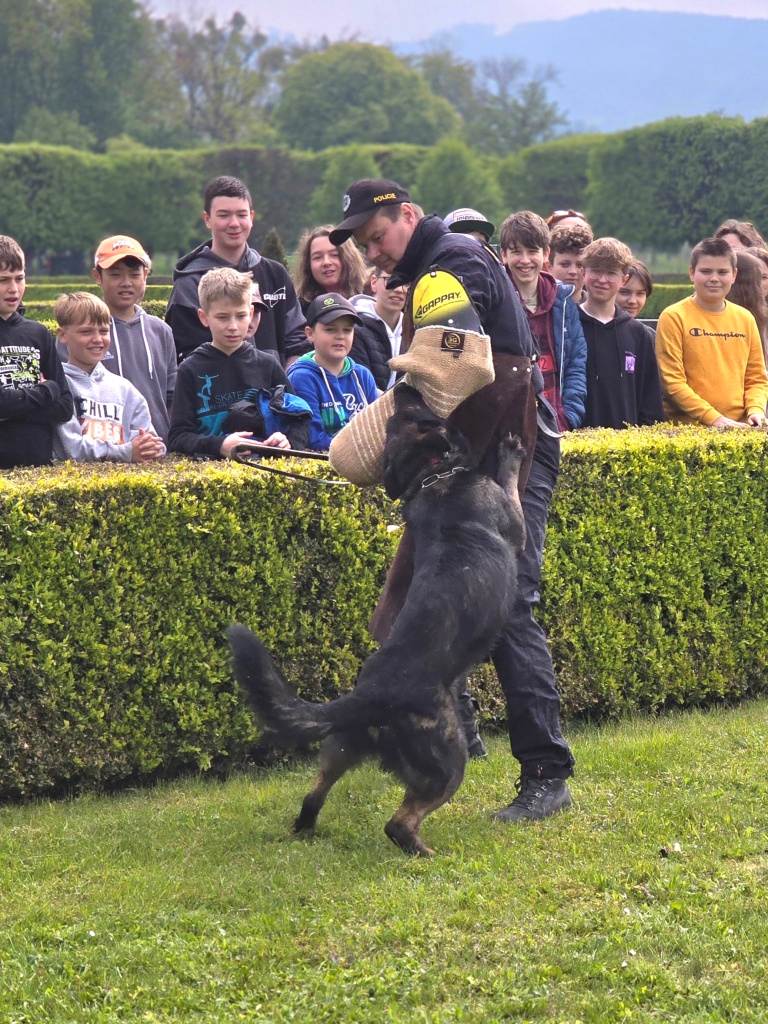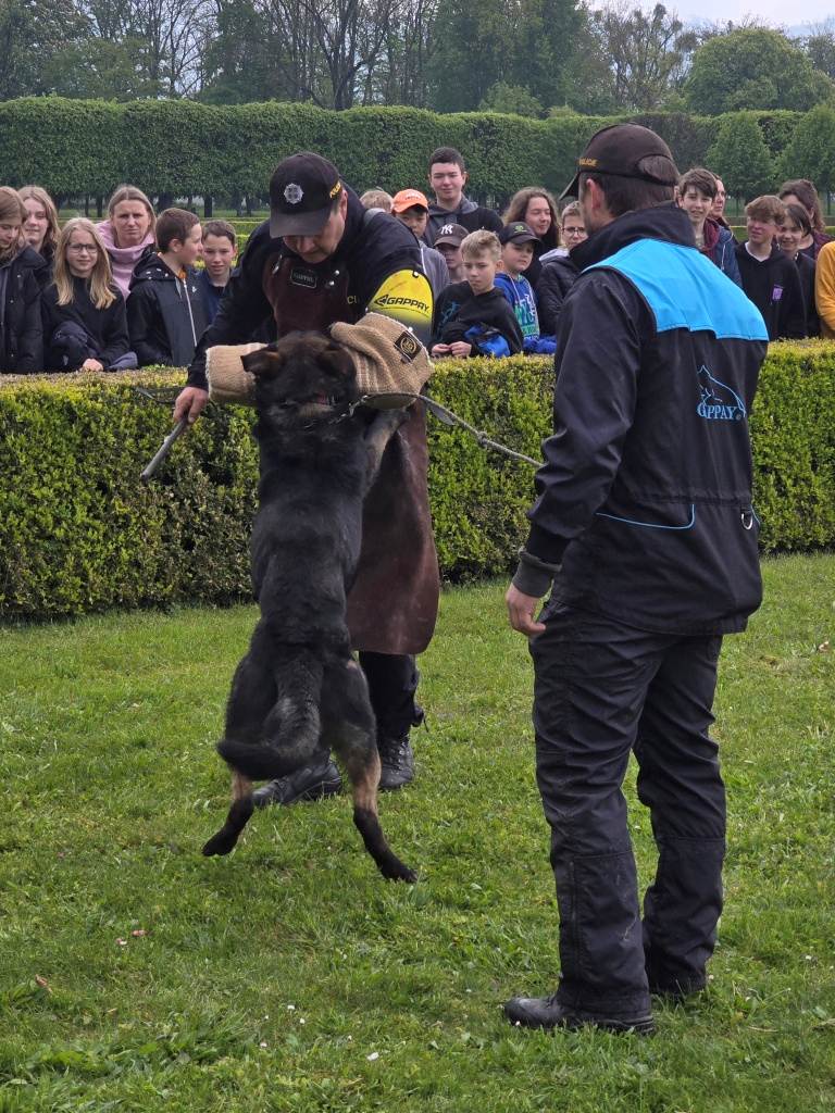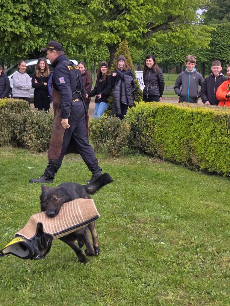 Dne 25. dubna 2024 se uskutečnila v rámci akce „Den Země“ v zámeckém parku v Holešově ukázka výcviku služebních psů. Profesionální ukázku předvedli psovodi Pracoviště ochrany areálu a krizového řízení školy. Výcvik služebních psů je pro diváky velmi atraktivní. O to více, že diváky byly děti mateřských a základních škol města Holešova.