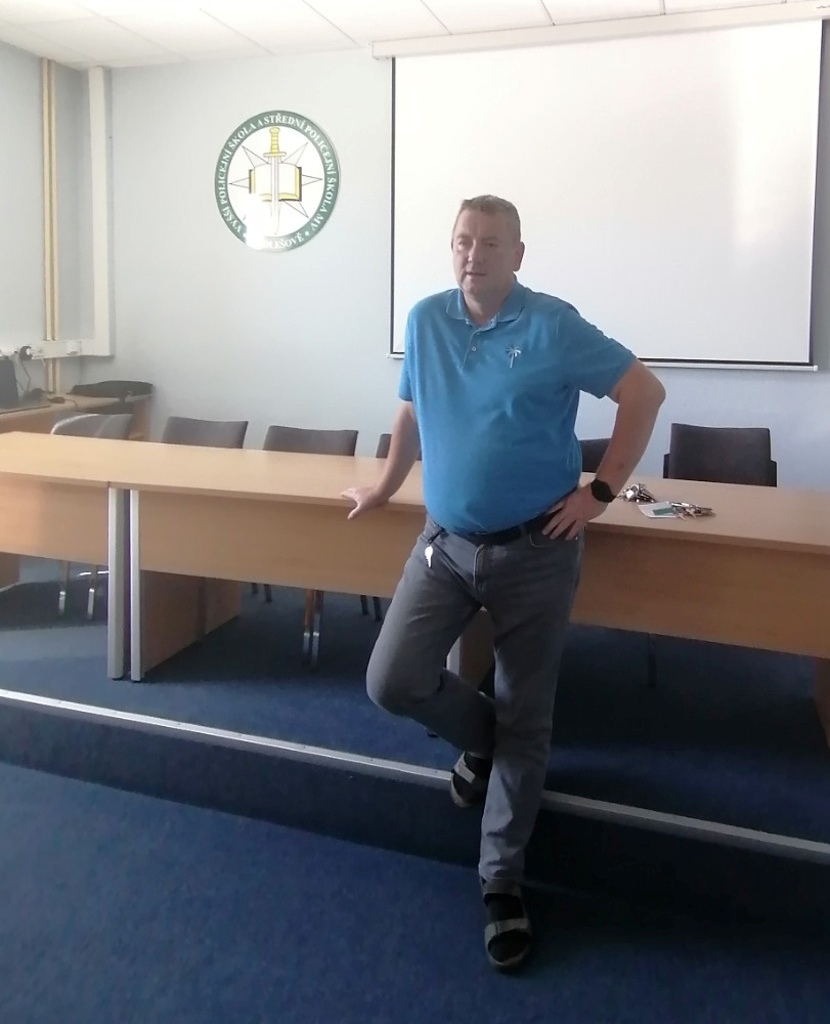 Teoretická část byla zahájena na zasedací místnosti budovy B1. Žáci byli informováni o způsobu vyhlášení evakuace, zákazu používání výtahů při vyhlášené evakuaci a také dostali informace k účelu venkovního požárního schodiště budovy včetně činností na shromaždišti. Součástí teorie byla i řada praktických informací zaměřených na bezpečnost a bezpečné chování ve škole; umístění AED (automatický externí defibrilátor) na internátě, efektivní použití hasicích přístrojů a správné postupy při volání složek IZS při mimořádných událostech v areálu policejní školy.
