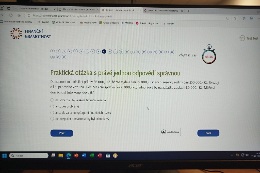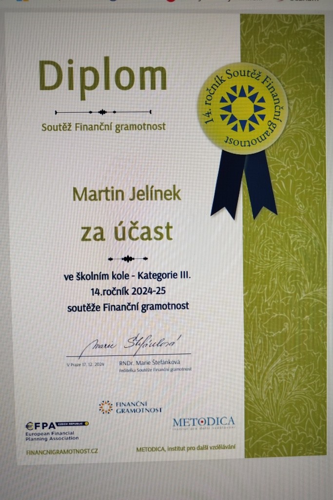 Závěrem minulého kalendářního roku se na naší škole v rámci předmětu Ekonomika uskutečnil již 14. ročník okresního kola soutěže ve finanční gramotnosti. Jednou z kategorií jsou studenti středních škol.