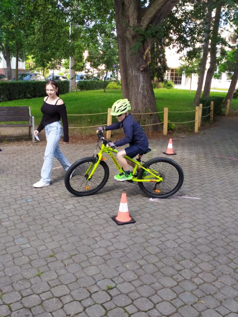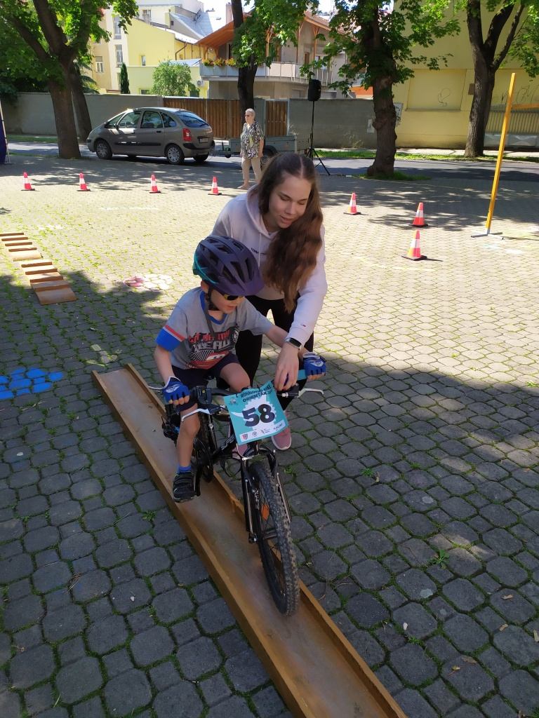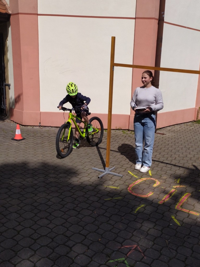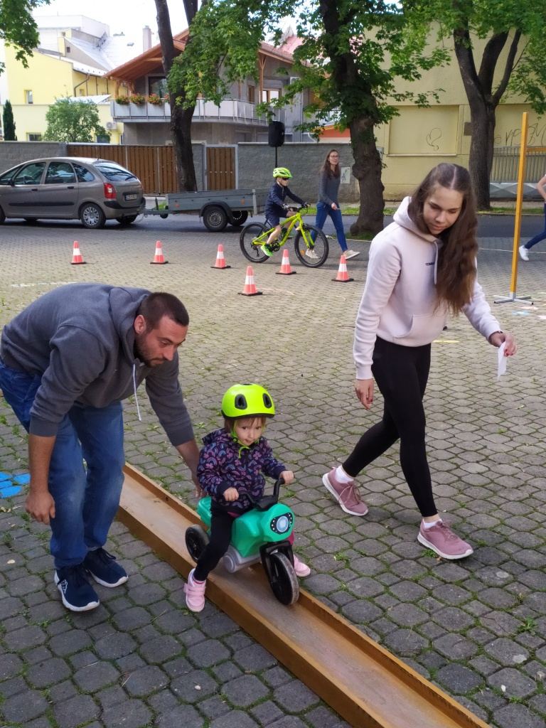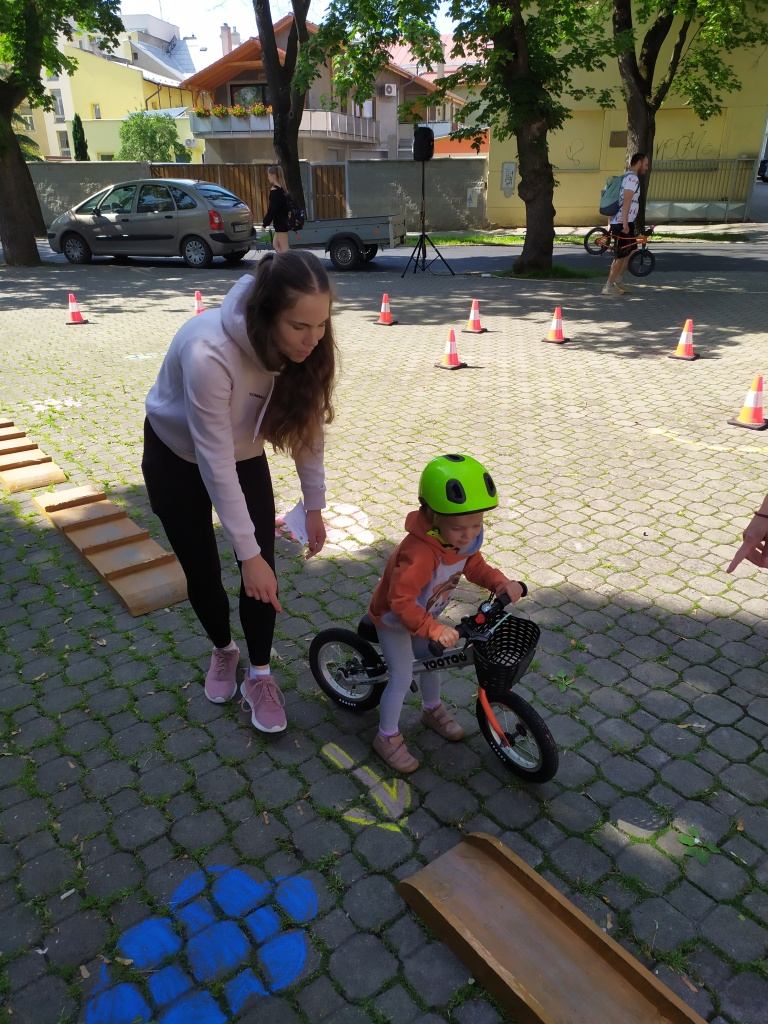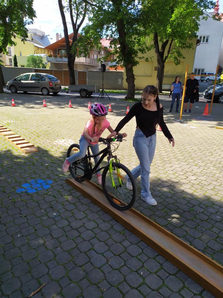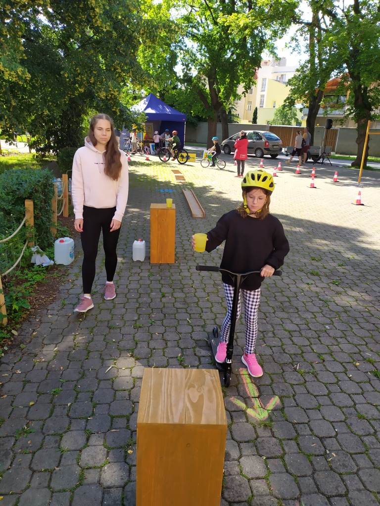 Pro dětské účastníky jsme připravili jízdu zručnosti, která zahrnovala slalom a zdolávání dalších překážek na kole nebo koloběžce. Trasu mezi jednotlivými překážkami vyznačily žákyně naší školy přehledným dopravním značením, které všem účastníkům umožnilo bezproblémovou orientaci na trati.
