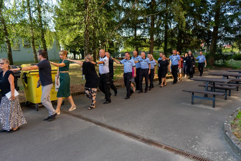 Aktuální nácvik byl připraven na základě požadavků samotných pedagogů vyjádřených v dotazníkovém šetření, které ukázalo potřebu reálného výcviku evakuace a praktických dovedností laické první pomoci. Pedagogové se celé dopoledne věnovali praktickému tréninku, který připravil realizační tým řízený ředitelem školy plk. PhDr. PaedDr. Pavlem Novákem, MBA a nácvik první pomoci následně připravila čtveřice profesionálů ze Zdravotnické záchranné služby Zlínského kraje pod vedením PhDr. Vladimíra Husárka, MBA. Všem patří velký dík.