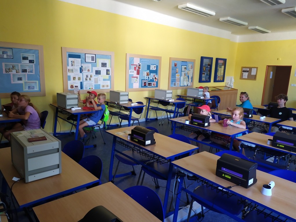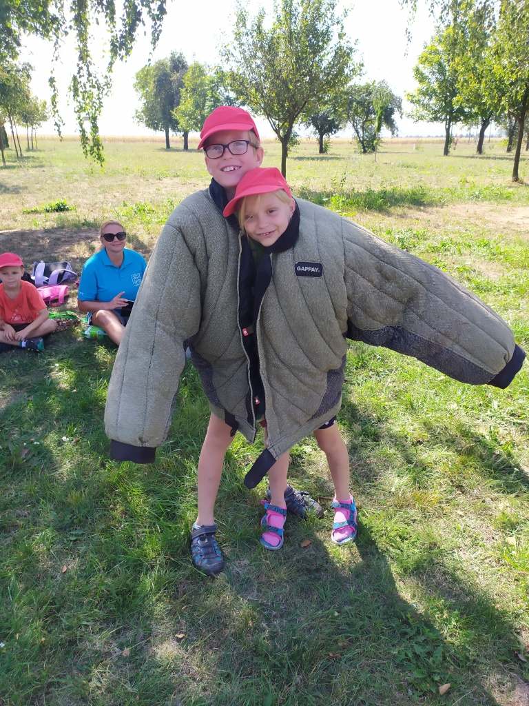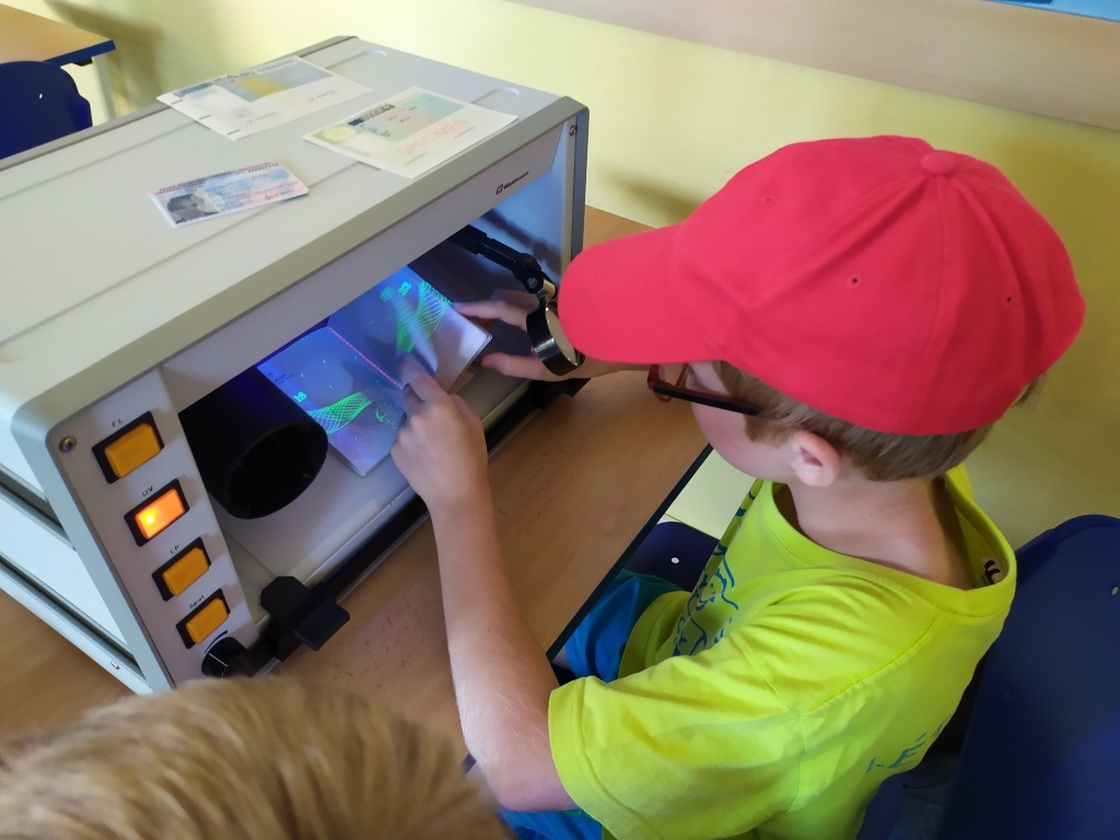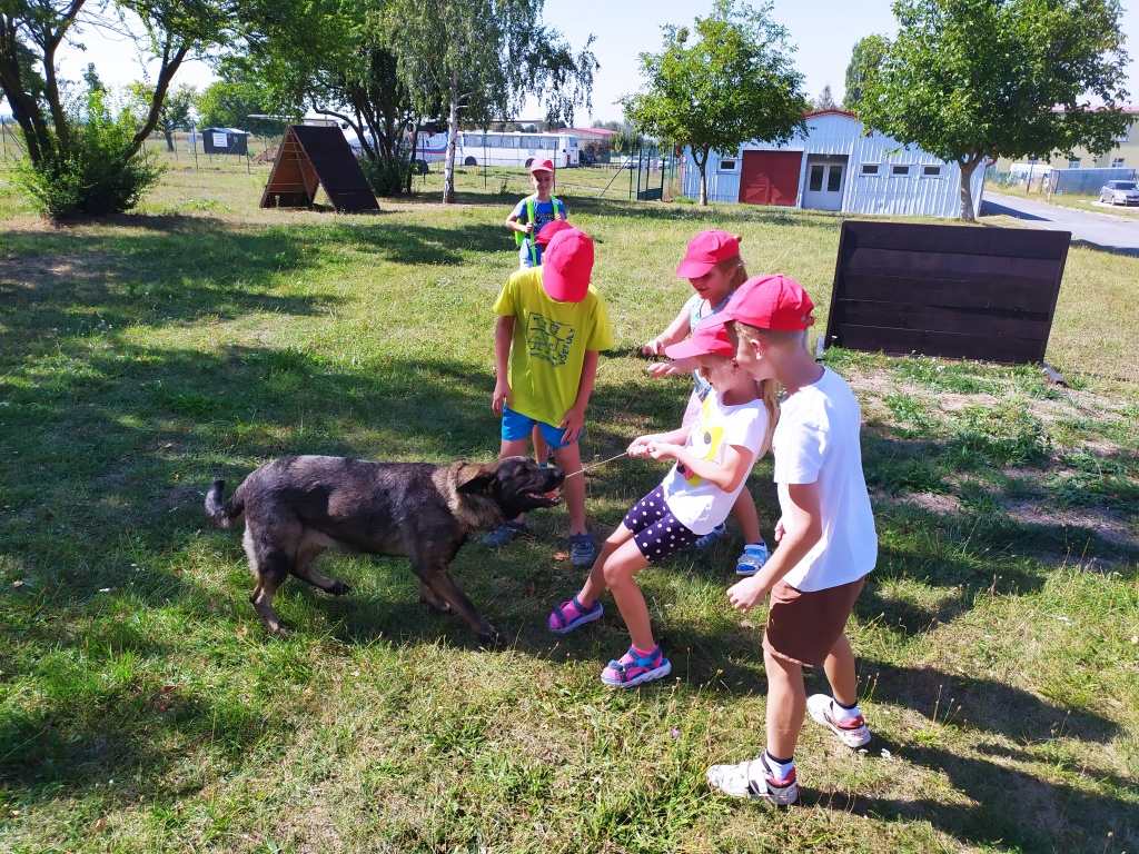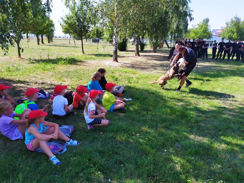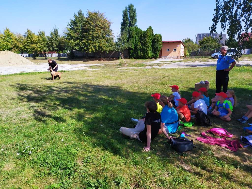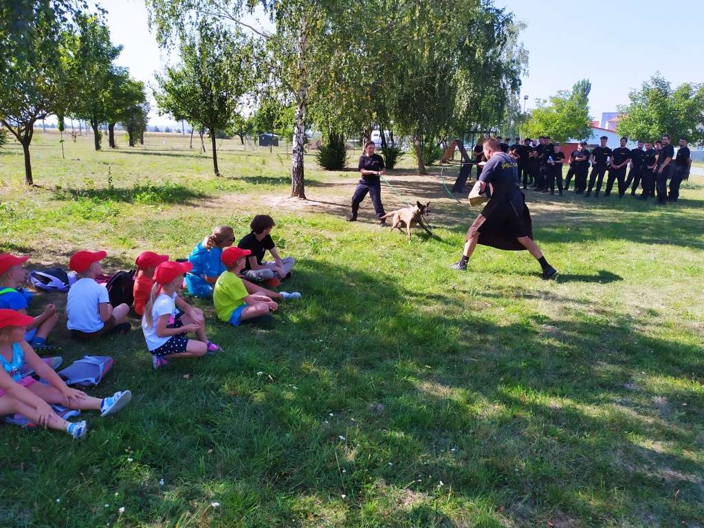 Jako součást programu příměstského tábora, organizovaného Střediskem volného času TYMY v Holešově, se uskutečnila exkurze v naší škole. V pátek 30. srpna malé táborníky a jejich pedagogický dozor nejdříve zaujal kpt. Mgr. Petr Novosád vybranými jistícími prvky českých dokladů a bankovek. Děti neskrývaly překvapení a úžas nad tím, co všechno spatřily díky využití technických prostředků využívaných při kontrole pravosti dokladů. Pod vedením plk. Mgr. Jaromíra Tobiáše následovala ukázka a možnost vyzkoušet si vybrané prostředky využívané především službou pořádkové a dopravní policie. I toto se setkalo s velkým zájmem účastníků a někteří by si nejraději některé z donucovacích prostředků odnesli s sebou domů. Pobyt dětí ve škole zakončili prap. David Polzer a prap. Bc. Barbora Šmahlíková z pracoviště ochrany areálu a krizového řízení VPŠ a SPŠ MV v Holešově, kteří dětem předvedli ukázku výcviku služebních psů. Jako vzpomínku na návštěvu v naší škole si děti odnesly školní cestovní pasy a policejně laděné rozvrhy hodin, které se jim budou jistě na začátku nového školního roku hodit.