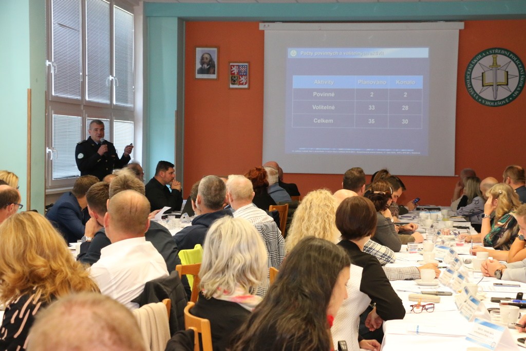 Ředitel školy plk. PhDr. PaedDr. Pavel Novák, MBA přivítal účastníky a zahájil toto setkání. Ministerstvo vnitra bylo zastoupeno ředitelem odboru bezpečnostního výzkumu a policejního vzdělávání Ing. Bc. Luďkem Michálkem, Ph.D., který pozdravil přítomné účastníky. Na setkání byli přítomni zástupci z 32 škol včetně zástupců 2 rezortních škol Ministerstva vnitra. Celé setkání probíhalo v tvořivé a konstruktivní atmosféře.