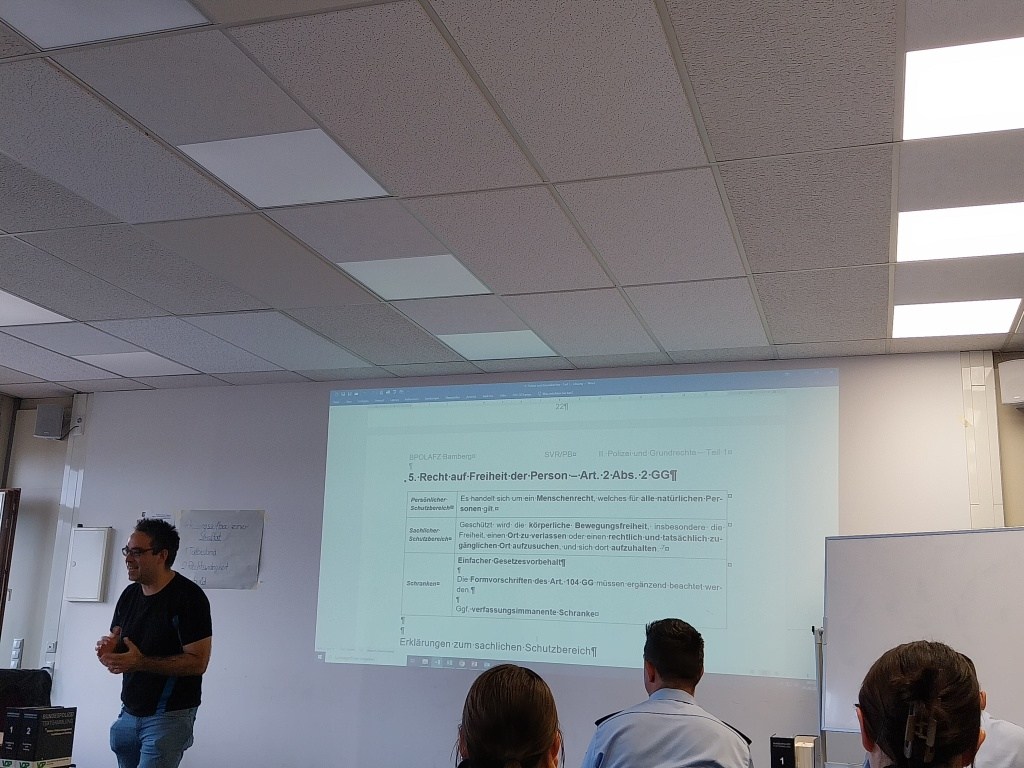 Následující den jsme se rozdělili po dvojicích do tříd kolem 25 policistů. Pro následující tři dny začal program, jenž se skládal z předmětů jako právo, cizinecká a pohraniční policie, tělocvik nebo střelby. Přihlíželi jsme i nácviku zákroků pod jednotným velením v souvislosti s připravovaným Mistrostvím Evropy ve fotbale 2024. Každá třída měla samozřejmě jiný rozvrh, a tak den každé dvojice žáků vypadal jinak.