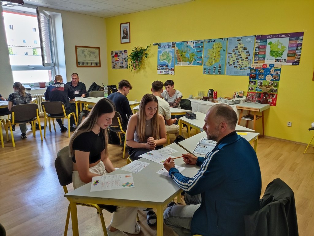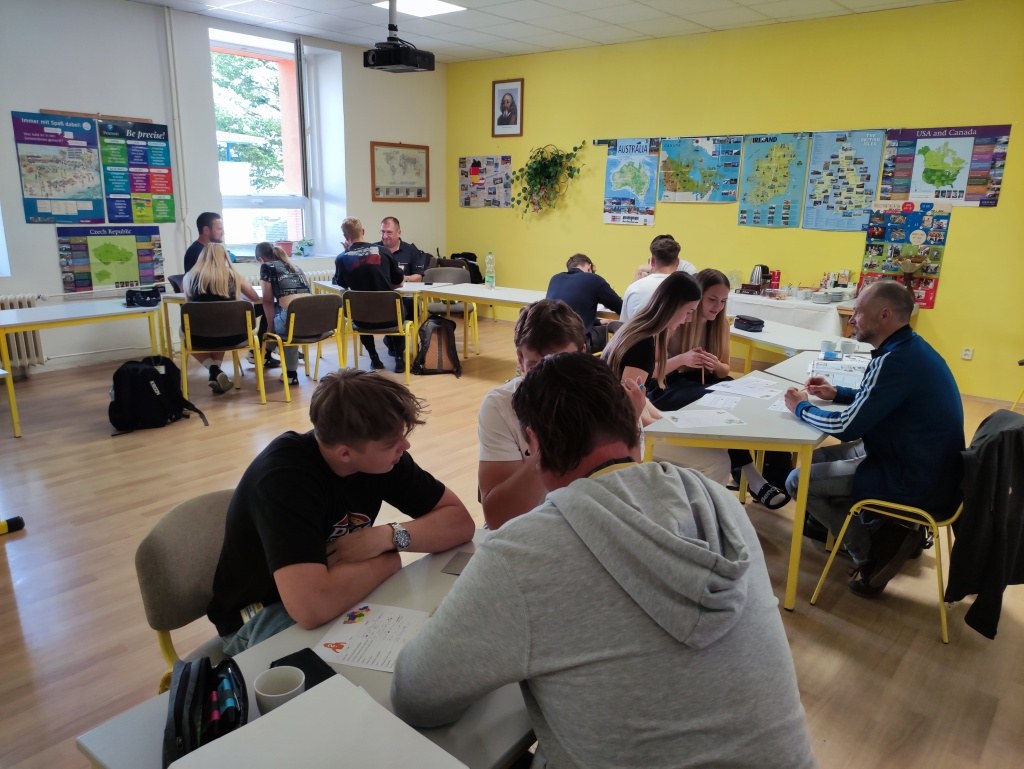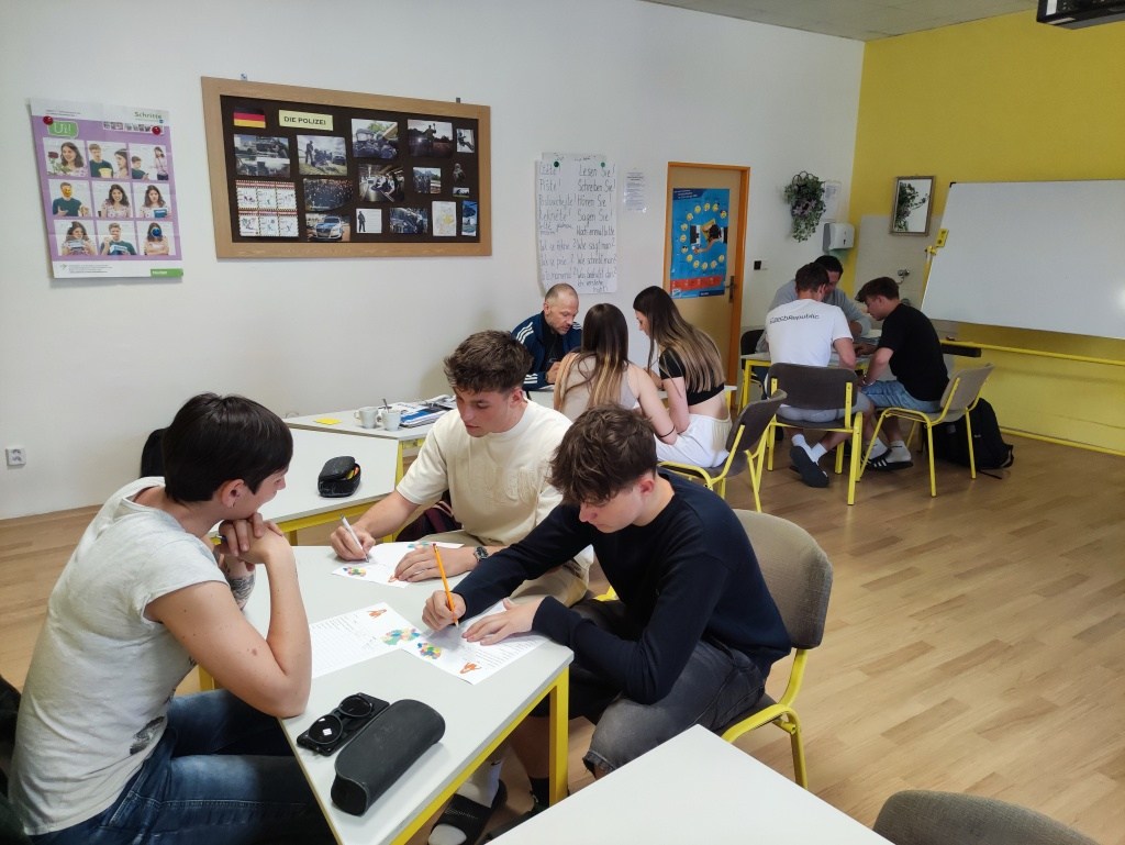 V rámci vyučování v Holešově jsme pro ně připravily dvě hodiny tandemové výuky, které se zúčastnilo 14 němčinářů ze tříd 2. C a 2. D.