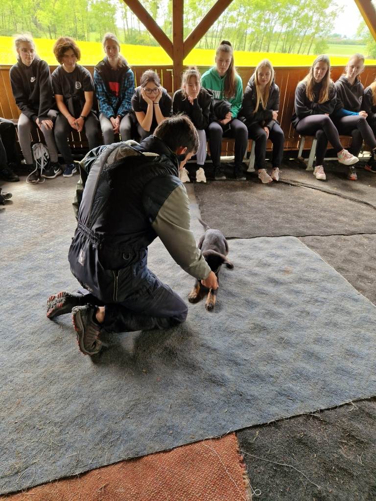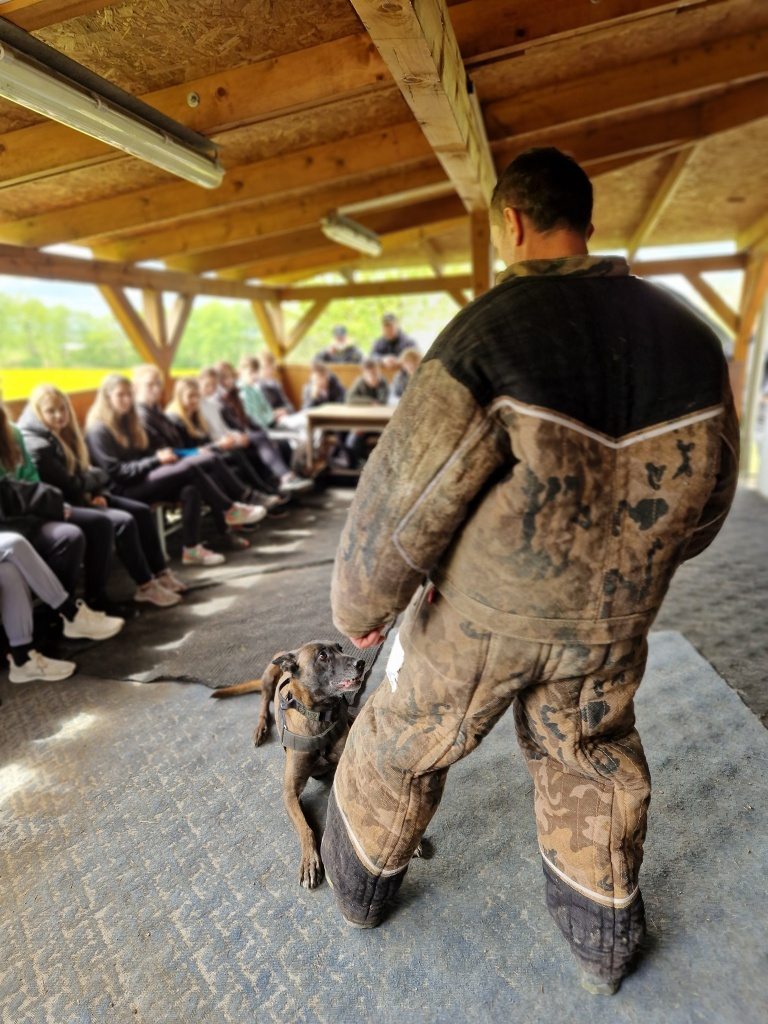 Ve středu 17. dubna se třída 1. B společně s paní třídní učitelkou a panem učitelem Smithem vydala uklidit oblast v okolí Výcvikového střediska služebních psů a psovodů v Dobroticích. Nejprve nás zástupce vedoucího provedl celým areálem výcvikového střediska. Součástí prohlídky také byla ukázka cvičení psů s psovody a figurantem. Program se nám moc líbil.