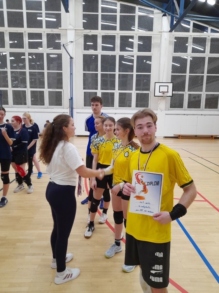 Turnaje se zúčastnilo celkem šest družstev, která byla losem rozdělena do dvou skupin. Naším cílem bylo soupeře ve skupině porazit, což se také podařilo. Tím pádem jsme se přímým postupem probojovali do finále, kde nás čekal rozhodující zápas s domovem mládeže z Otrokovic. První set jsme vyhráli celkem hladce v poměru 15:7, nicméně soupeř ve druhém setu přidal, ale pořád mu to nestačilo, aby nás porazil. A tak jsme si do Holešova odvezli plné konto bodů bez prohry či remízy.