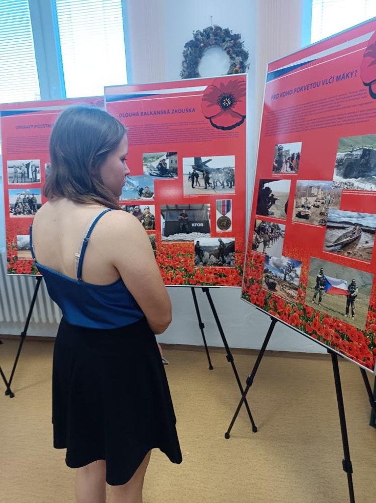 Třináct panelů je členěno na určité bloky a hned v úvodu se každý návštěvník výstavy seznámí se vznikem symbolu vlčího máku a osobou doktora Johna McCrae. I když jde jen o rychlý exkurz do jednotlivých válečných konfliktů, pro žáky SOŠ se jedná o zajímavou výstavu díky chronologickému uspořádání jednotlivých konfliktů, které jsou zde ve stručnosti přiblíženy.
