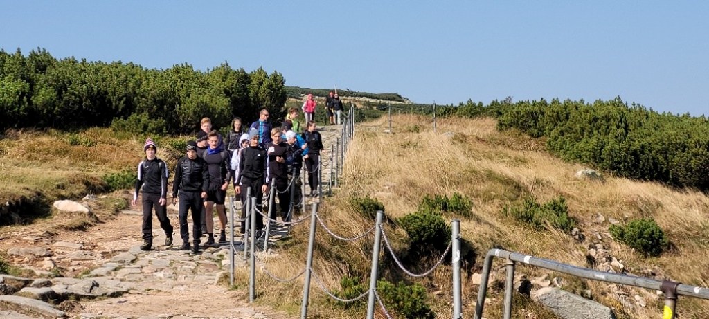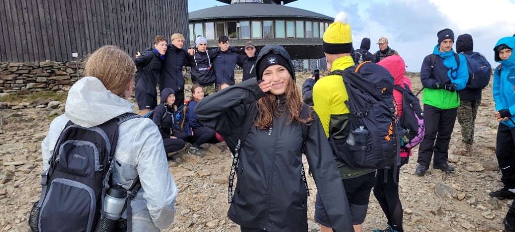V rámci našeho kurzu jsme zažili spoustu různorodých aktivit i proměnlivé počasí. V pondělí program začal výpravou do Špindlerova Mlýna, kde jsme absolvovali přednášku o práci Horské služby. Dozvěděli jsme se, jak se starají o bezpečnost v horách, zachraňují zraněné turisty a zvládají nepředvídatelné horské podmínky. Následující den jsme sami zažili trochu adrenalinu. Slaňovali jsme ze skály a vyzkoušeli si, jak se poskytuje první pomoc v obtížně dostupném terénu. Později jsme v kánoi sjížděli řeku Jizeru a procvičili si nejen pádlování, ale i týmovou spolupráci. Největší výzvou byla túra na horu Sněžku. Třídám 3. A a 3. D se vše vydařilo a mohly si v jasném slunečném počasí užít nezapomenutelný výhled z vrcholu. Druhé dvě třídy už takové štěstí neměly – provázela je mlha, déšť a vítr, což túru výrazně ztížilo. I přes nepřízeň počasí jsme všichni zdolali vrchol. Poslední den nás v areálu hotelu čekal běžecký závod “Masakr”, který prověřil naši fyzičku.