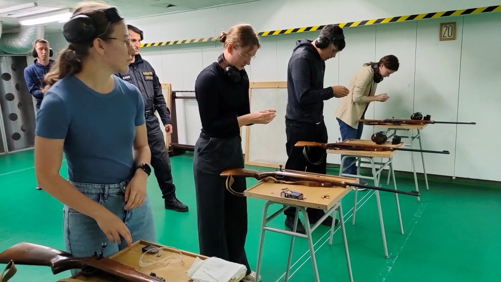 Úterní program zahájilo Oddělení odborné bezpečnostní přípravy, plk. Karel Hrudík představil projekt Sportovní třída roku a provedl skupinu po vnitřních i venkovních sportovištích. Studenti si poté vyzkoušeli střelbu na vnitřní střelnici pod vedením kpt. Hladíkové a kpt. Lyska – nejprve proběhlo poučení o bezpečné manipulaci se zbraní, následoval nácvik a střelba z krátkých i dlouhých zbraní. Program doplnila návštěva speciální učebny zbraní, jejíž význam a možnosti představil plk. Repka. Odpoledne patřilo kulturnímu programu – skupina navštívila město Holešov, místní zámek a zámeckou zahradu.