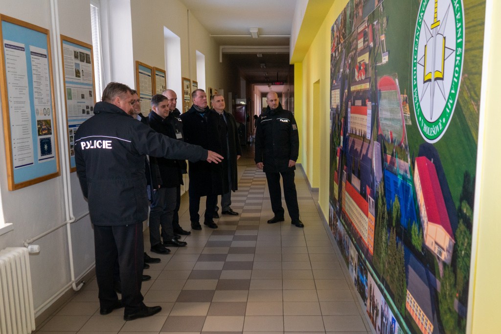 Ředitel školy vrchní rada plk. PhDr. PaedDr. Pavel Novák, MBA při jednání prezentoval širokou škálu vzdělávacích aktivit školy a rovněž hovořil o úzké spolupráci s útvary Policie ČR i dalšími subjekty zabývajícími se vnitřní bezpečností České republiky. Rovněž zdůraznil úspěšnost v přijímání absolventů školy do služebního poměru k Policii České republiky, ale i k dalším bezpečnostním sborům ČR. PhDr. Jan Paďourek, Ph.D. s doprovodem si následně prohlédli areál školy, zejména učebně výcvikovou základnu, tedy odborné učebny, tělovýchovná zařízení i síň tradic.
