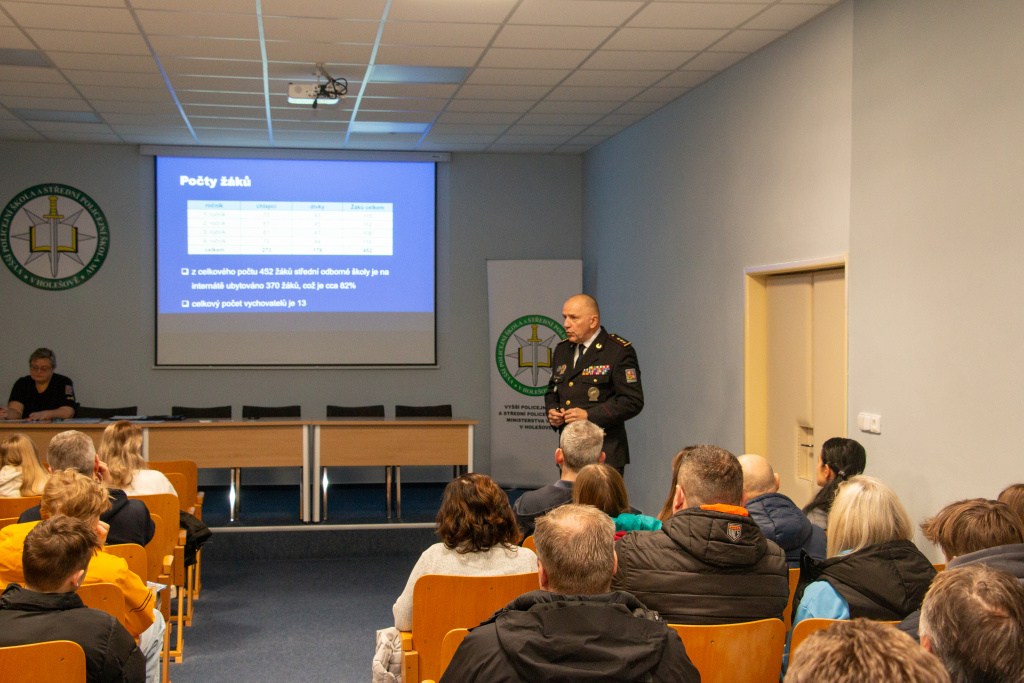 Vyšší policejní škola a Střední policejní škola Ministerstva vnitra v Holešově uspořádala v sobotu 18. ledna 2025 Den otevřených dveří. Jednalo se již o druhý termín (první termín proběhl 19. října 2024). V rámci programu se pro uchazeče o střední odbornou školu pořádaly prezentace o přijímacím řízení, průběhu a podmínkách studia. Zájemci si mohli prohlédnout areál školy – odborné učebny, sportoviště, ubytovací zařízení i síň tradic – vše doplněno erudovaným výkladem pedagogů. V roli doprovodu návštěvníkům působili naši žáci střední odborné školy, kteří se úkolu zhostili na výbornou. Poděkování patří nejen jim, ale všem, kteří se na zabezpečení této akce podíleli.