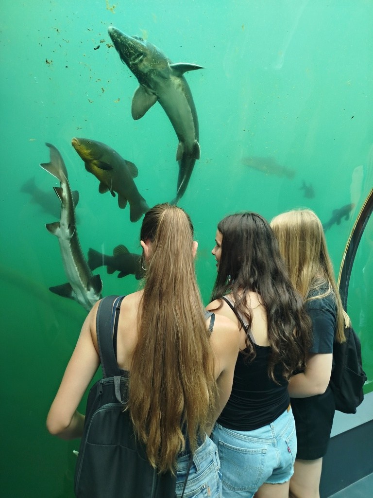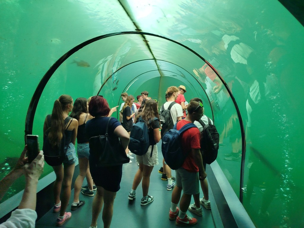 Následující částí horkého dne byla návštěva ekologického areálu „Živá voda“ v obci Modrá. Tato expozice nabízí ojedinělou možnost pozorovat sladkovodní život zblízka, včetně průhledového tunelu pod hladinou. Žáci si mohli prohlédnout nejen různé druhy ryb a vodních organismů, ale i seznámit se s rostlinami typickými pro mokřady, tůně a okolí řeky Moravy. Neméně zajímavá byla také vybudovaná okružní stezka s doprovodným textem historicky vyšlechtěného plemene Praturů. Tato část programu velmi vhodně navázala na probírané učivo biologie a ekologie, čímž podpořila komplexní vnímání přírodních jevů.