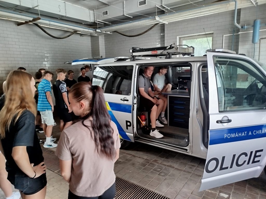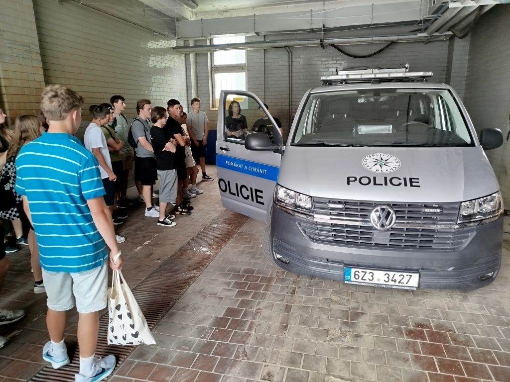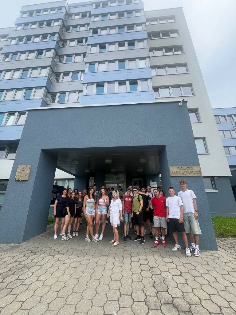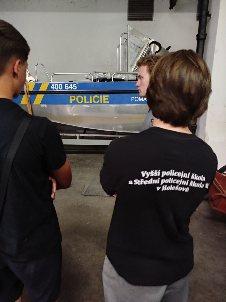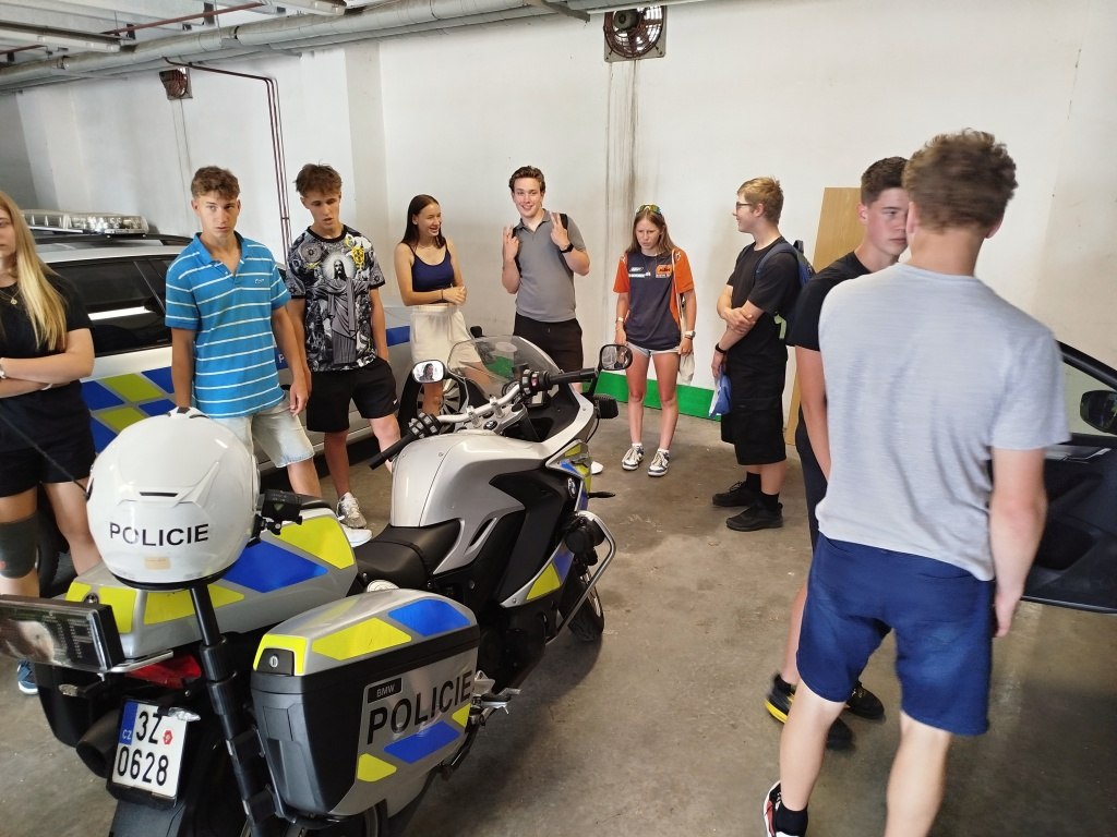 Program exkurze byl zakončen návštěvou Obvodního oddělení Policie České republiky v Uherském Hradišti. Studenty zde přivítala por. Bc. Milena Šabatová pracující jako preventista KŘ P Zlínského kraje, která velmi srozumitelným a poutavým způsobem představila každodenní chod policejní služby. Mimo popisu organizační struktury a náplně práce policie se věnovala také hodnotám, které jsou s tímto povoláním neodmyslitelně spojeny – důvěra, spravedlnost, odpovědnost a etika. Studenty rovněž motivovala k úvahám o své budoucí profesní dráze, a to nejen v oblasti bezpečnostních složek, ale i s ohledem na význam dalšího vzdělávání a celoživotního rozvoje. Nadále byla studentům také představena motorizovaná technika a vybavení policistů. Velmi poutavá byla také rozmluva s prvosledovou hlídkou PČR, která studentům charakterizovala každodenní výkon služby, včetně materiálního vybavení hlídky.
