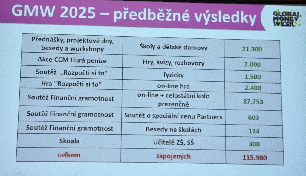 V měsíci dubnu jsem se zúčastnil závěrečné konference Global Money Week 2025, která se konala v Kongresovém sále České národní banky v Praze. Tato akce byla součástí celosvětového týdne a vyvrcholením mezinárodní kampaně, která podporuje vzdělávání mladých lidí v oblasti financí a odpovědného hospodaření.