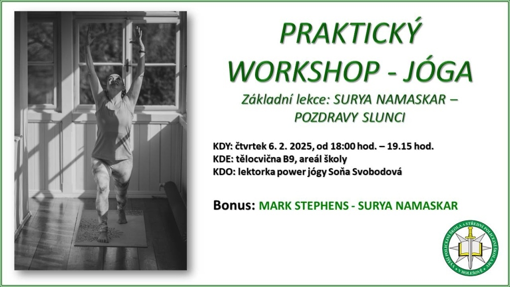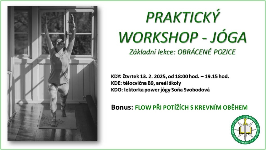 Dne 16. ledna se v prostorách VPŠ a SPŠ MV v Holešově uskutečnil workshop zaměřený na posílení středu těla, známého jako CORE. Tento klíčový prvek zdravého držení těla pomáhá předcházet bolestem zad a dalším problémům spojeným se sedavým způsobem života. Účastníci si pod vedením lektorky osvojili správné dechové techniky, práci s pomůckami a cviky na posílení středu těla. Náročné cvičení zakončila relaxace, muzikoterapie, aromaterapie a čajový rituál. Další lekce proběhnou 6. a 13. února 2025 – přijďte si zacvičit a načerpat energii!