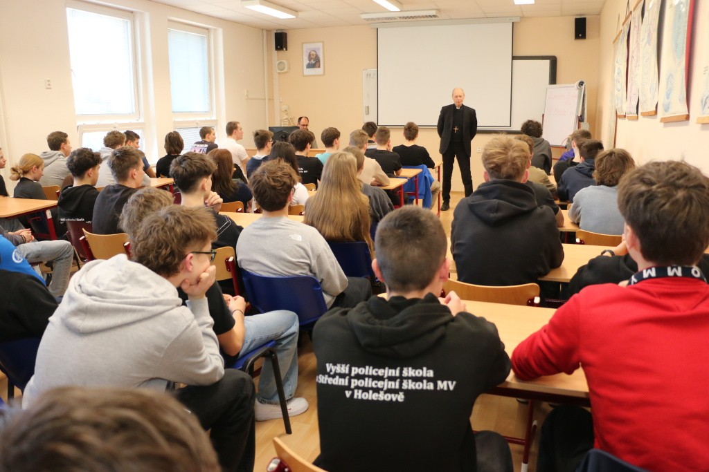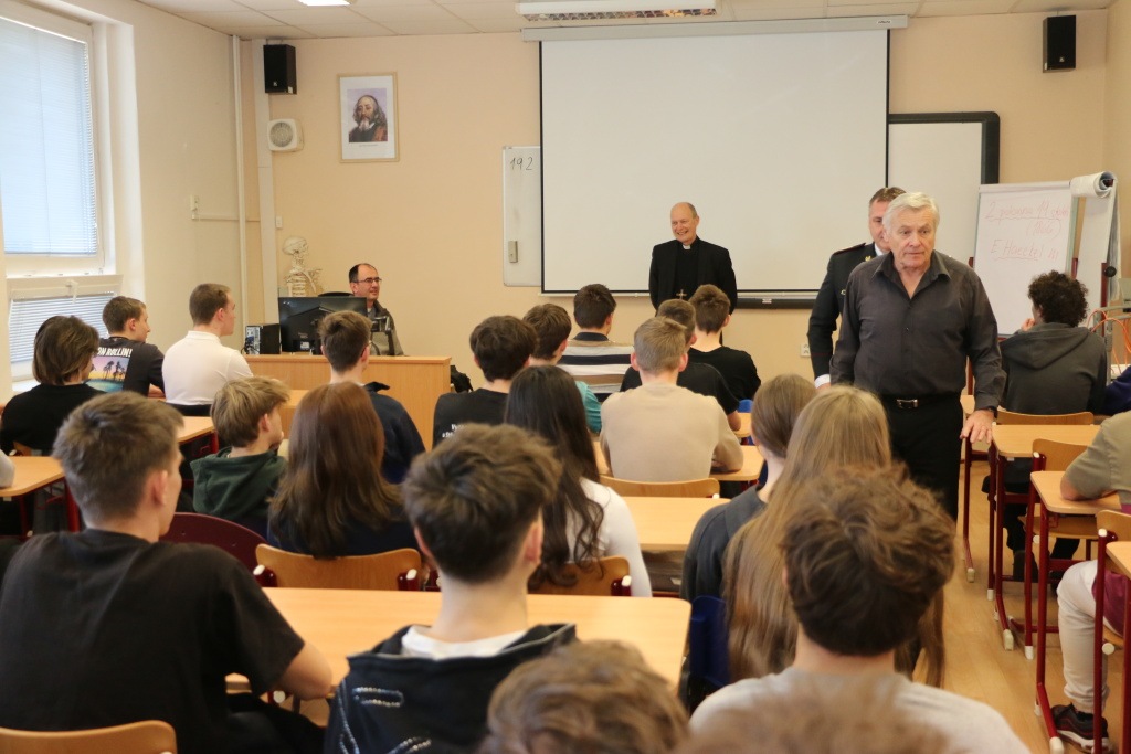 Součástí projektu semináře „Mravní a křesťanská výchova“ byla dne 19. 2. 2025 beseda s olomouckým biskupem Mons. Antonínem Baslerem.