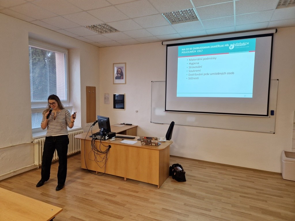 Přednáška pojednávala především o činnosti ombudsmana v místech, kde jsou osoby omezeny na osobní svobodě, tedy ve věznicích, policejních celách a psychiatrických léčebnách.