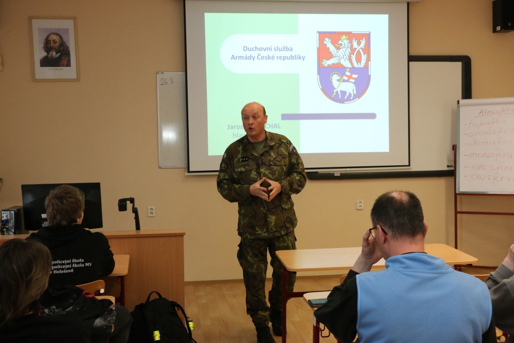 V rámci semináře „Mravní a křesťanská výchova“proběhla 26. března 2025 beseda s plk. gšt. Armády ČR Mgr. Jaroslavem Kníchalem, která byla zaměřena na otázky duchovní služby v podmínkách Armády ČR a ozbrojených složkách armád NATO.