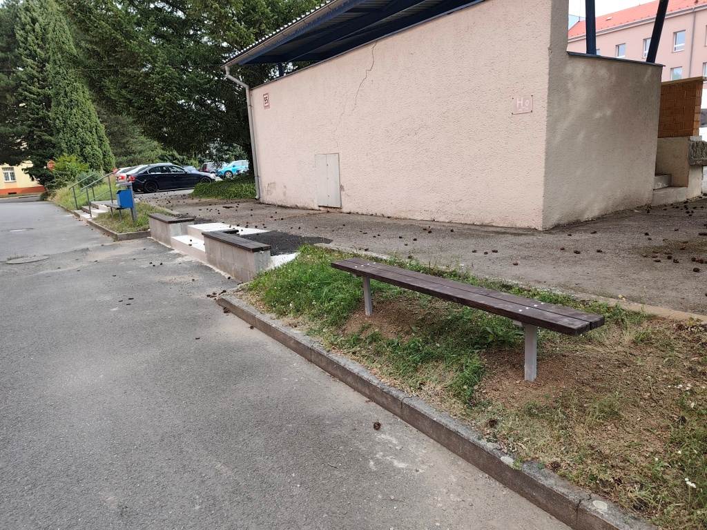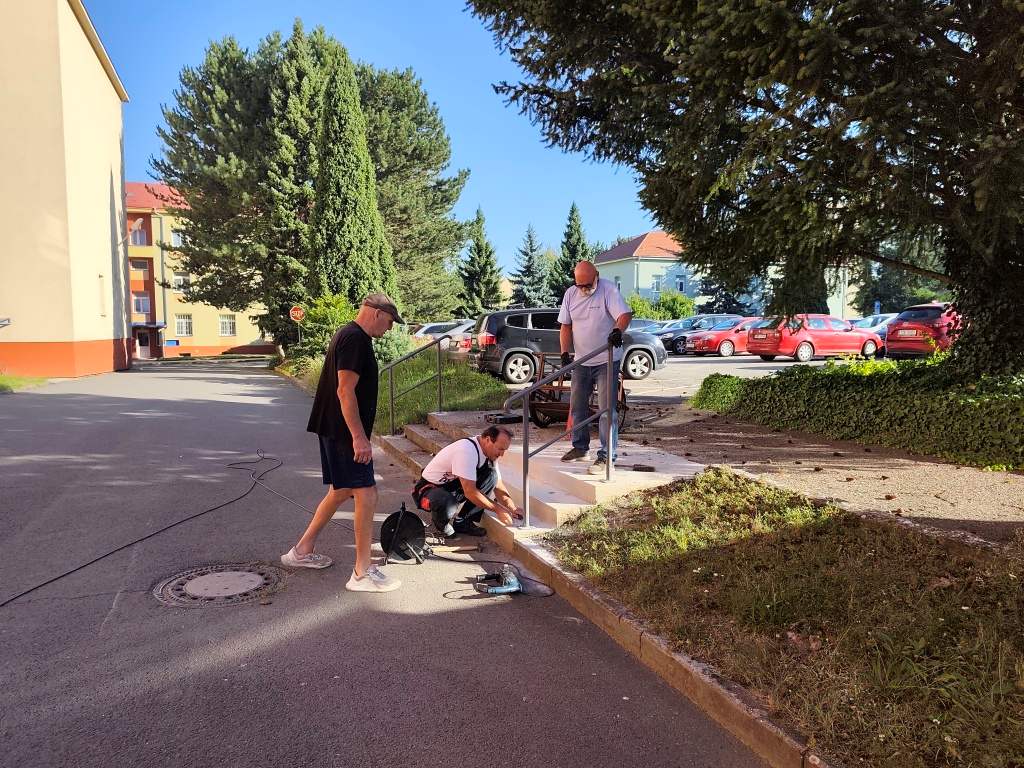 Pracovalo se i na údržbě zeleně a také na dalším zlepšení prostředí naší školy. Byla provedena úprava schodišť u tribuny nástupiště s tím, že u nich byly osazeny lavičky a provedena byla i dílčí úprava travnaté plochy u objektu B 4.