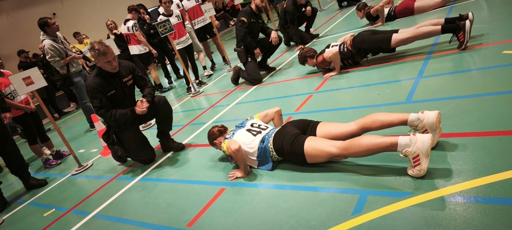 Smíšené tříčlenné týmy ve složení 1 dívka a 2 chlapci zakusily na vlastní kůži disciplíny policejních testů, kam patří vzpor ležmo – max. počet kliků, celomotorický test – 2 min, člunkový běh 4x10 m a běh na 1000 m.