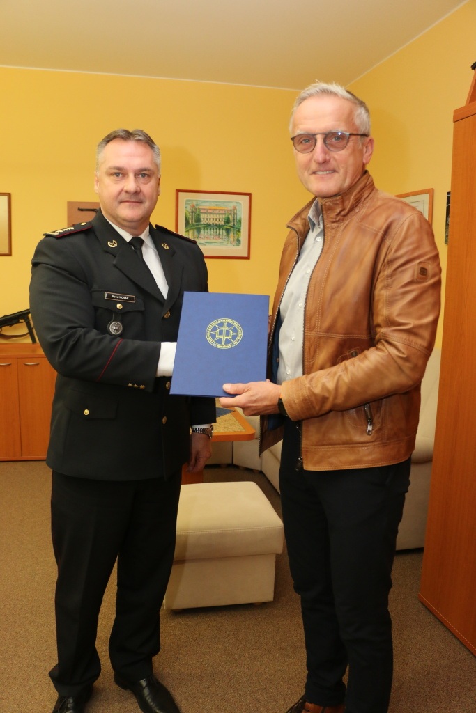 V rámci této spolupráce absolvoval týdenní stáž v naší škole EPHK Werner Kauer. Pan Kauer má za sebou dlouholetou velmi úspěšnou policejní kariéru. V letech 2010 až 2014 působil na pozici styčného důstojníka na Velvyslanectví Spolkové republiky Německo v Praze. Ve stejné pozici pracoval také v Turecku, Nigérii nebo Jordánsku. O svých zkušenostech hovořil se studenty 4. ročníku střední školy, pro které si připravil prezentaci. V týdnu se účastnil kurzu „Bezpečnost úředníka“, ze kterého získal osvědčení. V Kojetíně navštívil finále soutěže „Máš na to“, která se koná pod záštitou policejního prezidenta. Krátce byl přítomen i výuce na vyšší odborné škole. Bohatý program pokračoval i odpoledne. Pan Kauer navštívil Zlín, Přerov a poutní místo Hostýn. V Holešově se mu moc líbilo a přislíbil svou návštěvu i v příštích letech.