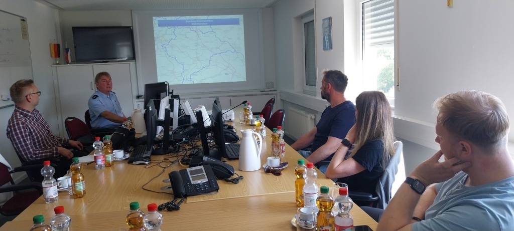 První den jsme se seznámili s náplní práce společného centra Schwandorf. Hned následující den jsme se věnovali tématice nelegální migrace a společných hlídek. Byli jsme seznámeni s prací územního odboru Waldmünchen a prakticky nám ukázali, jakým způsobem probíhají kontroly na hraničním přechodu Furth im Wald. Policisté spolkové policie zde kontrolovali vozidla a osoby z důvodu podezření na nelegální migraci. Dalším bodem programu byla návštěva letiště v Mnichově. Seznámili jsme se s úkoly a pravomocemi kriminalistů, měli jsme možnost sledovat příslušníky cizinecké policie na pasové kontrole a byl nám představen nový systém ENTER/EXIT, který má do budoucna nahradit EASYPASS. Další složka, pyrotechnici, nám ukázala speciální vozidlo s veškerým vybavením včetně robotů Telemaxe a Teodora. Následující den byl věnován specializovaným složkám spolkové policie ve Schwandorfu, a to oddělení identifikace osob a padělání dokladů. Jedním z posledních bodů programu bylo představení psovodů a speciální pořádkové jednotky MKÜ.