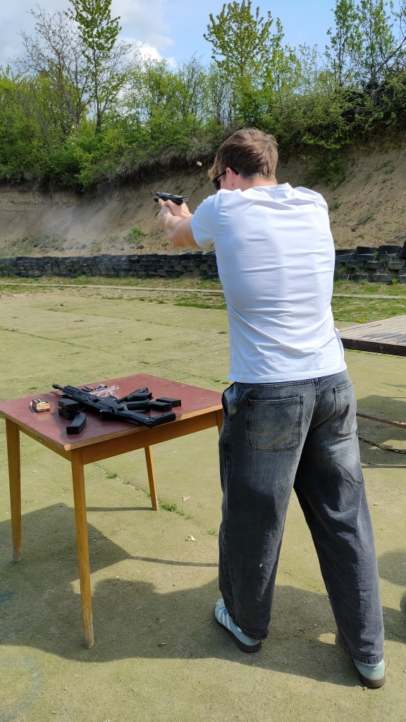 Po vyhlášení výsledků se vítězná družstva přemístila na venkovní střelnici Maršov. Tady si dívky i chlapci měli možnost zastřílet z několika velkorážných zbraní České zbrojovky jako např. z pistole CZ SHADOW, z CZ P – 09 a 10, ze samopalu EVO 3 a dalších. Žáky střelba velice bavila, stříleli i na kovové gongy. Dívky i chlapci byli nadšeni. Tímto bych chtěla velmi poděkovat kolegům a pořádající škole z Uherského Brodu za tuto skvělou příležitost.
