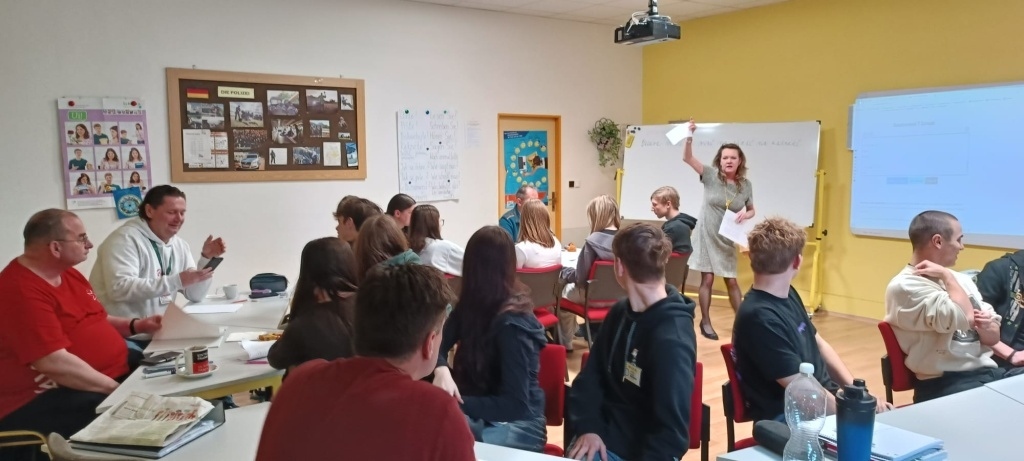 Tři čtvrtě hodiny utekly neuvěřitelně rychle! Podle zpětné vazby od českých i německých účastníků byla tandemová výuka přínosná a představovala pro obě strany neocenitelnou zkušenost. Naše trojice si skvěle sedly – a po tak intenzivní hodině jsme museli učebnu pořádně vyvětrat. Atmosféra byla zkrátka nabitá energií! 😊