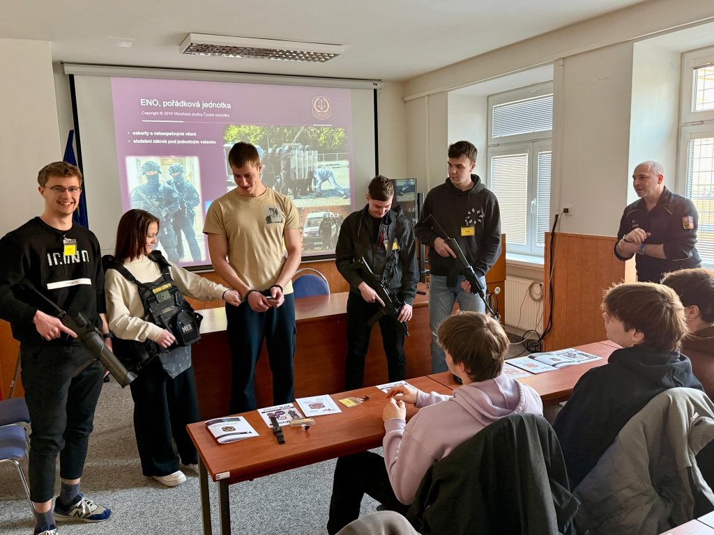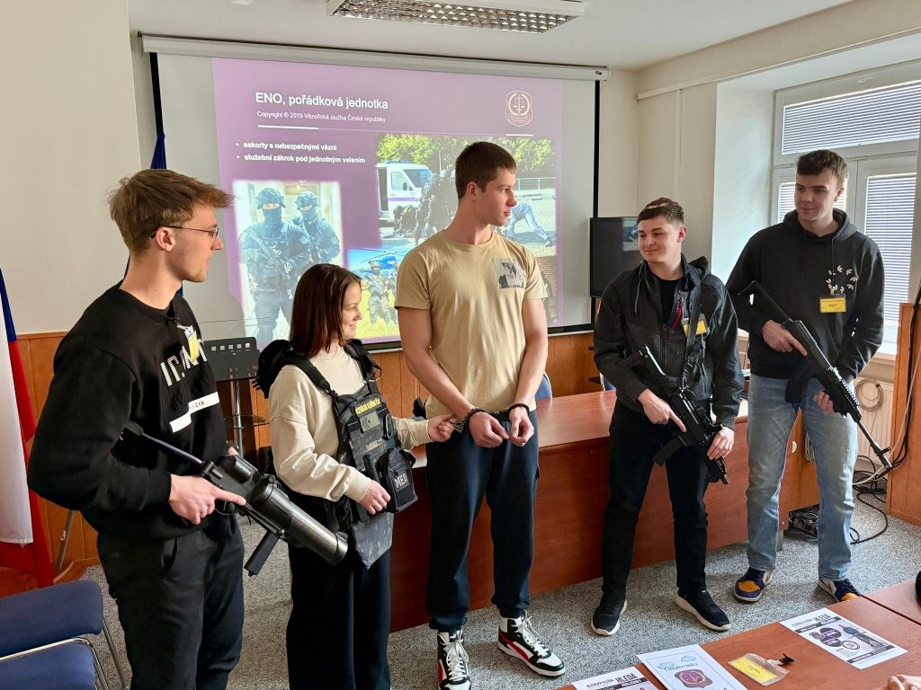 V návaznosti na výuku odborných předmětů kriminalistiky a kriminologie jsme navštívili v měsíci únoru Vazební věznici a Ústav pro výkon zabezpečovací detence v Brně, se kterou naše škola dlouhodobě spolupracuje. Součástí exkurze byla odborná přednáška o historii věznice, o samotném provozu jednotlivých oddělení – vazby, výkonu trestu odnětí svobody, zabezpečovací detence. Seznámili jsme se prakticky s činností vězeňské služby a justiční stráže. Přednáška byla doplněna o ukázku výstroje a výzbroje, kterou tyto bezpečnostní složky využívají. Poté jsme se v živé výpovědi seznámili s osudem jednoho z odsouzených vězňů. Následovala krátká informativní beseda o podmínkách přijetí do služebního poměru.