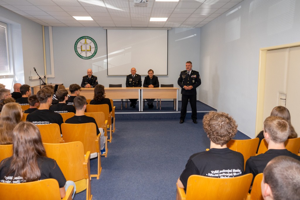 V pondělí 1. září ředitel školy přivítal žáky a žákyně prvního ročníku a zahájil tak školní rok 2025/2026. Všem nastupujícím do 1. ročníku bylo představeno vedení školy – ředitel školy plk. PhDr. PaedDr. Pavel Novák, PhD., MBA, zástupce ředitele pro výuku a výcvik plk. Ing. Bc. Andrej Rohál, Ph.D., zástupce ředitele pro vnitřní záležitosti plk. Mgr. Pavel Zhébal a zástupce ředitele pro ekonomiku Ing. Bc. Martin Novotný.