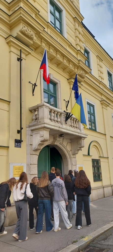 Dne 2. října 2025 jsme se zúčastnili výchovně vzdělávacího zájezdu do Vídně. Program zájezdu byl zahájen dopoledne prohlídkou zámeckého parku Schönbrunn, kde jsme se seznámili s historií rakouské monarchie a významem této památky. Následně jsme navštívili Velvyslanectví České republiky, kde nás v 10.30 hodin přivítal zástupce velvyslance, Mgr. Jan Brunner. Poté pan Marián Paštinský, styčný důstojník Policie ČR, nás poutavě seznámil s činností policie v oblasti mezinárodní spolupráce a s každodenní agendou diplomatické služby.